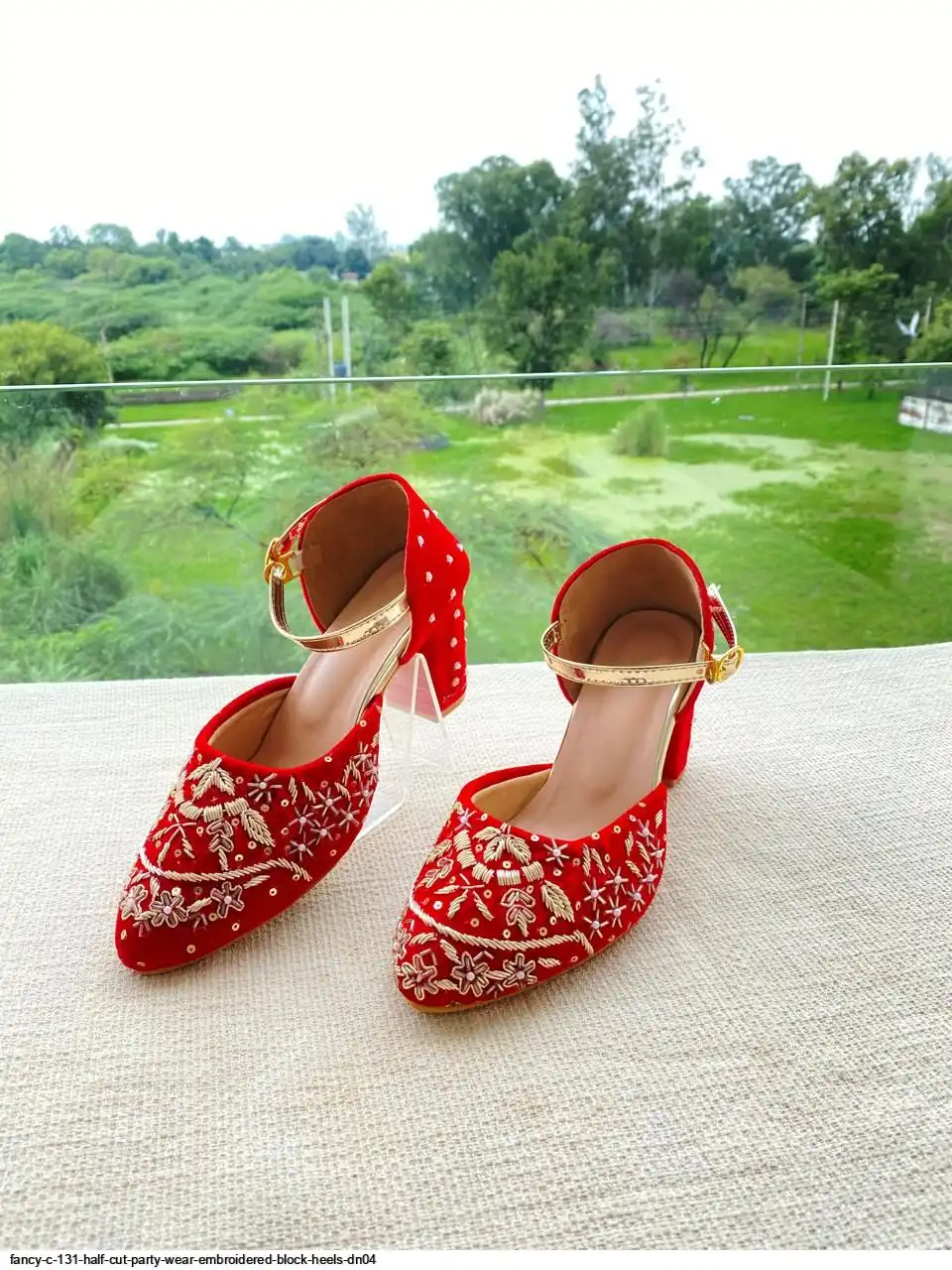 FANCY C 131 HALF CUT PARTY WEAR EMBROIDERED BLOCK HEELS DN04