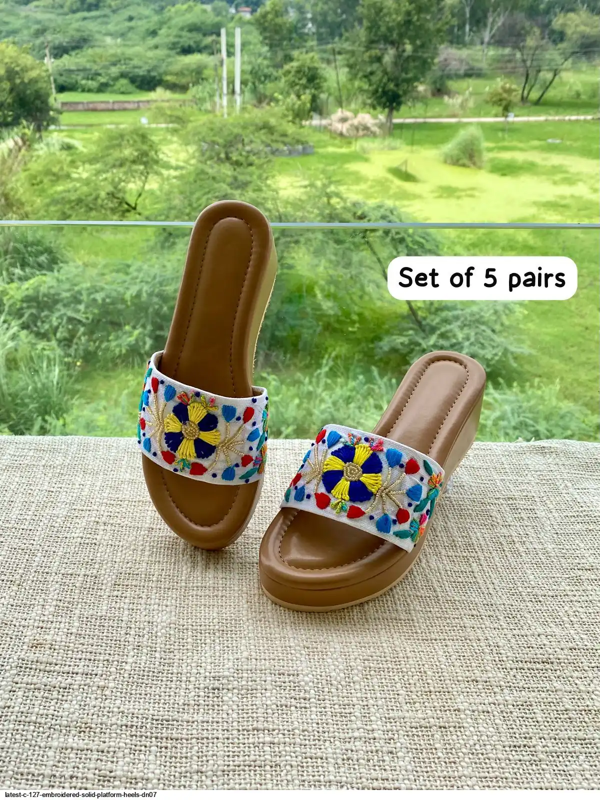 LATEST C 127 EMBROIDERED SOLID PLATFORM HEELS DN07