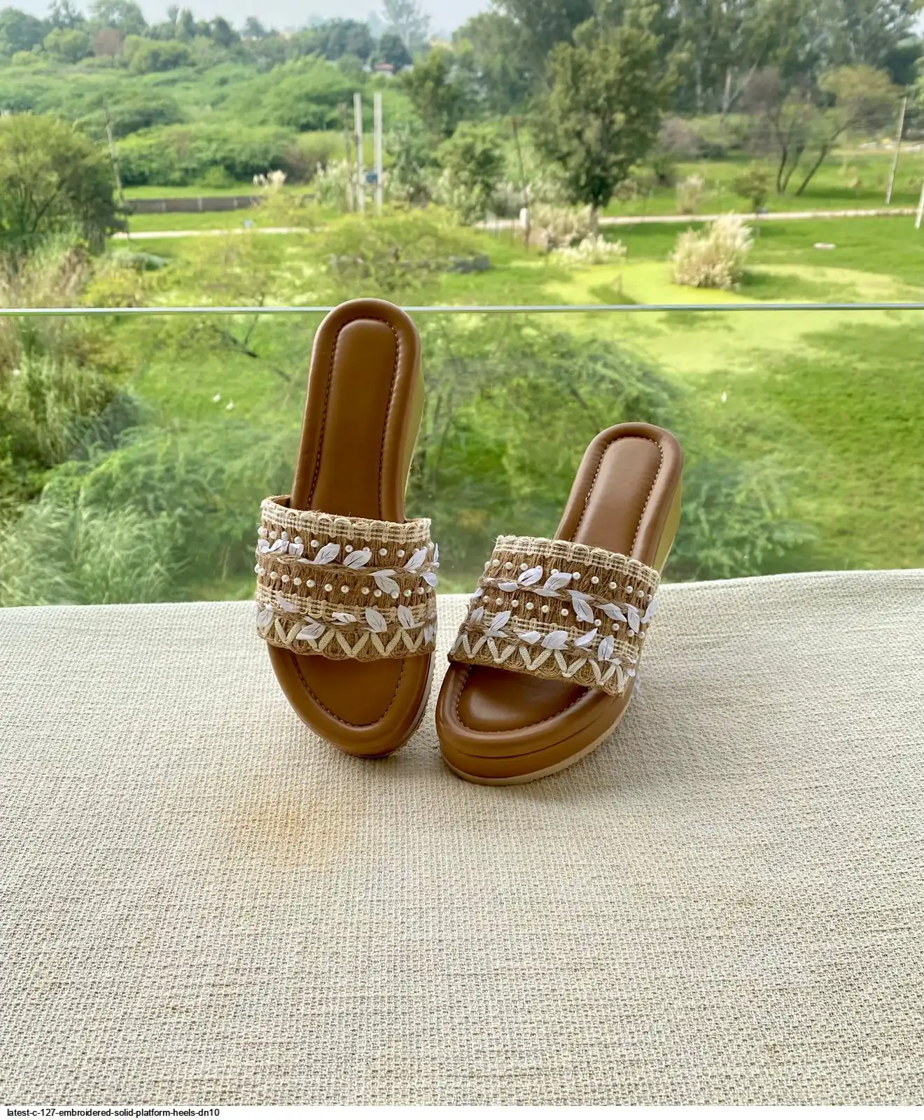 LATEST C 127 EMBROIDERED SOLID PLATFORM HEELS DN10