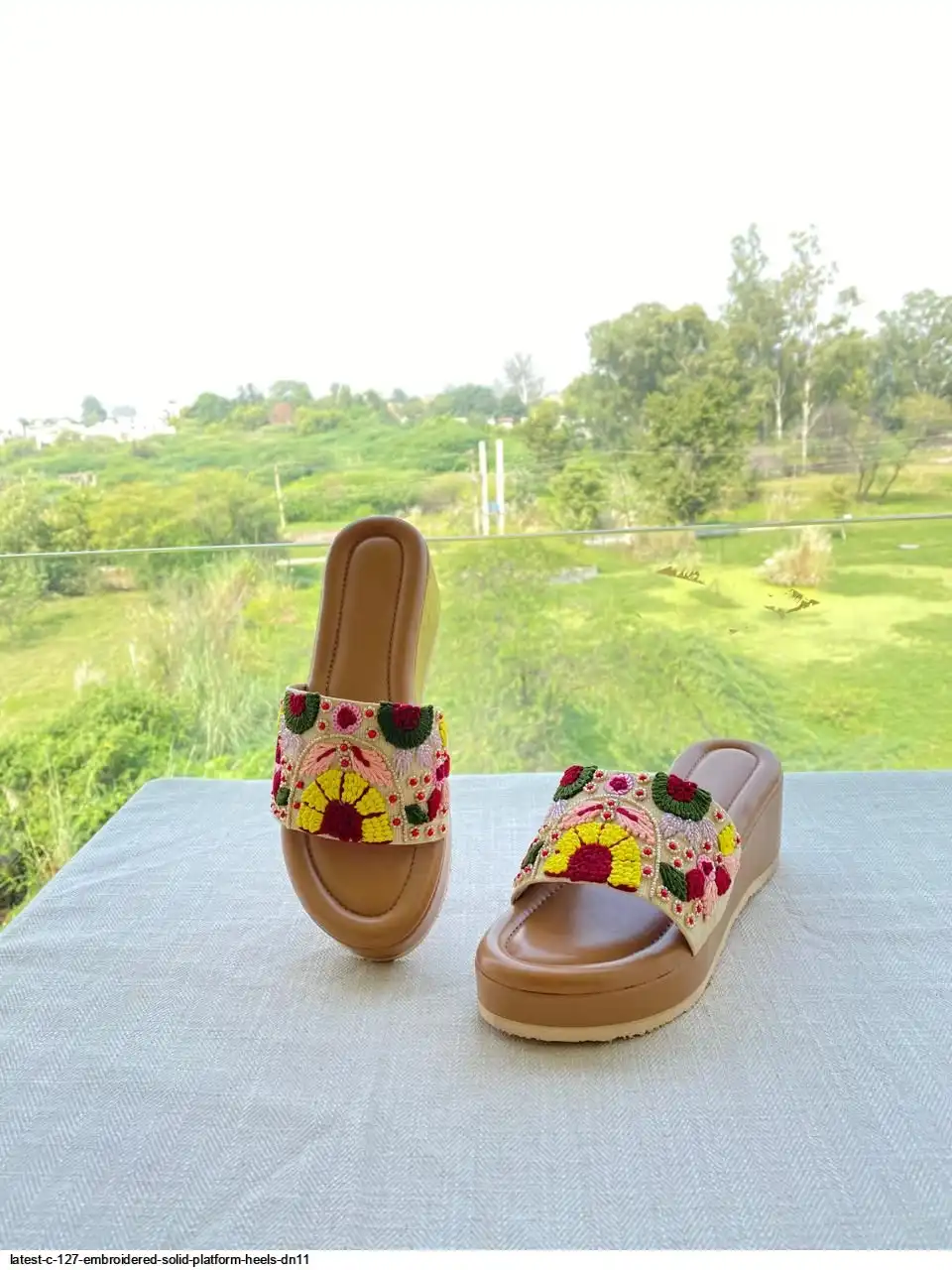 • LATEST C 127 EMBROIDERED SOLID PLATFORM HEELS DN11