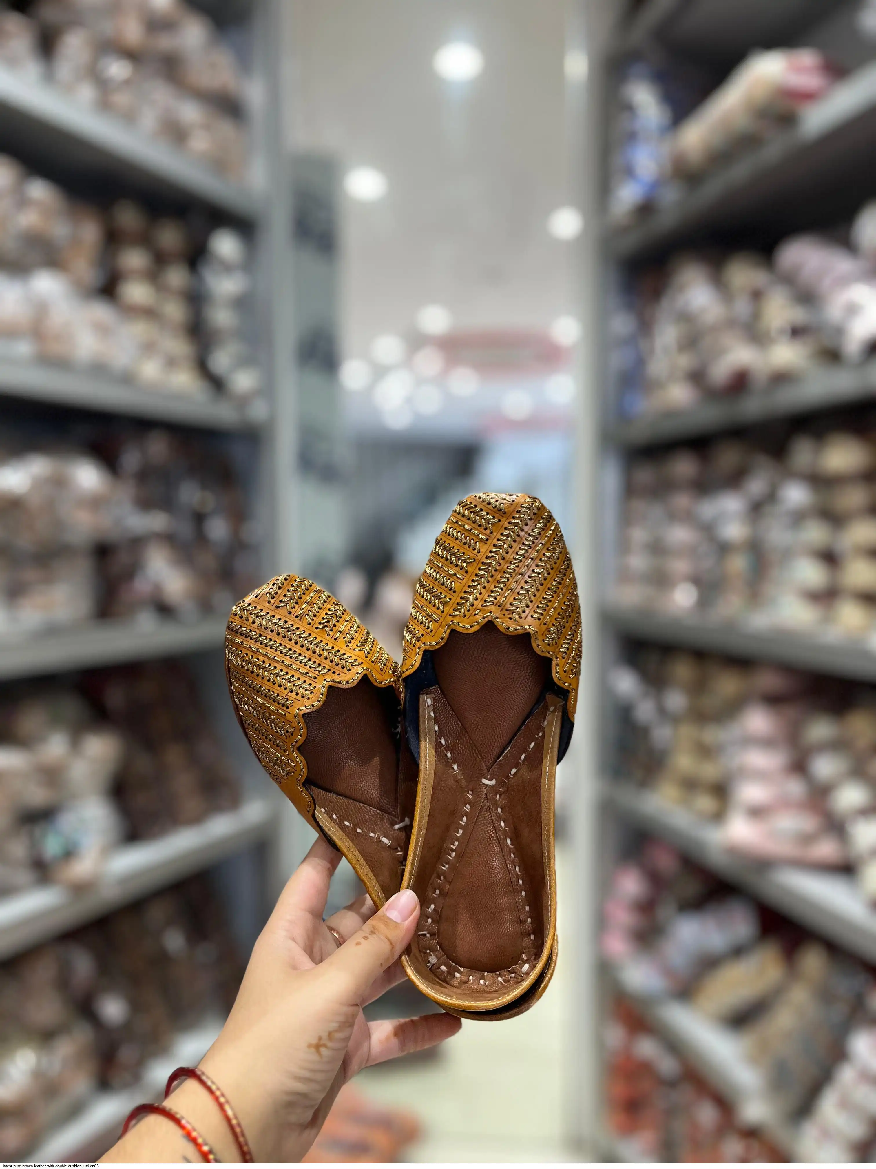 • LATEST PURE BROWN LEATHER WITH DOUBLE CUSHION JUTTI DN05