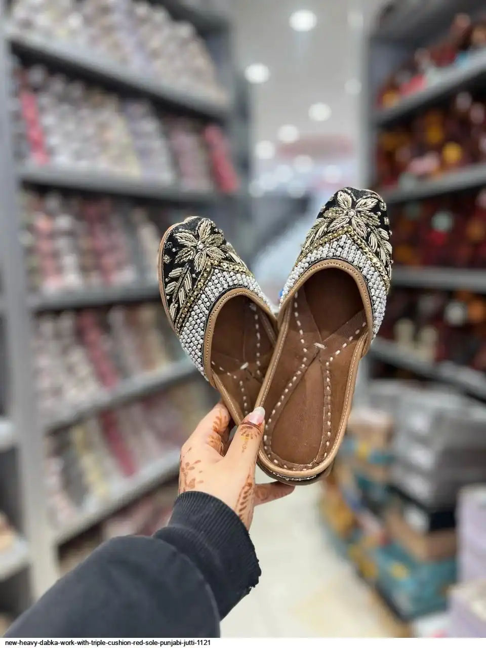 NEW HEAVY DABKA WORK WITH TRIPLE CUSHION RED SOLE PUNJABI JUTTI 1121