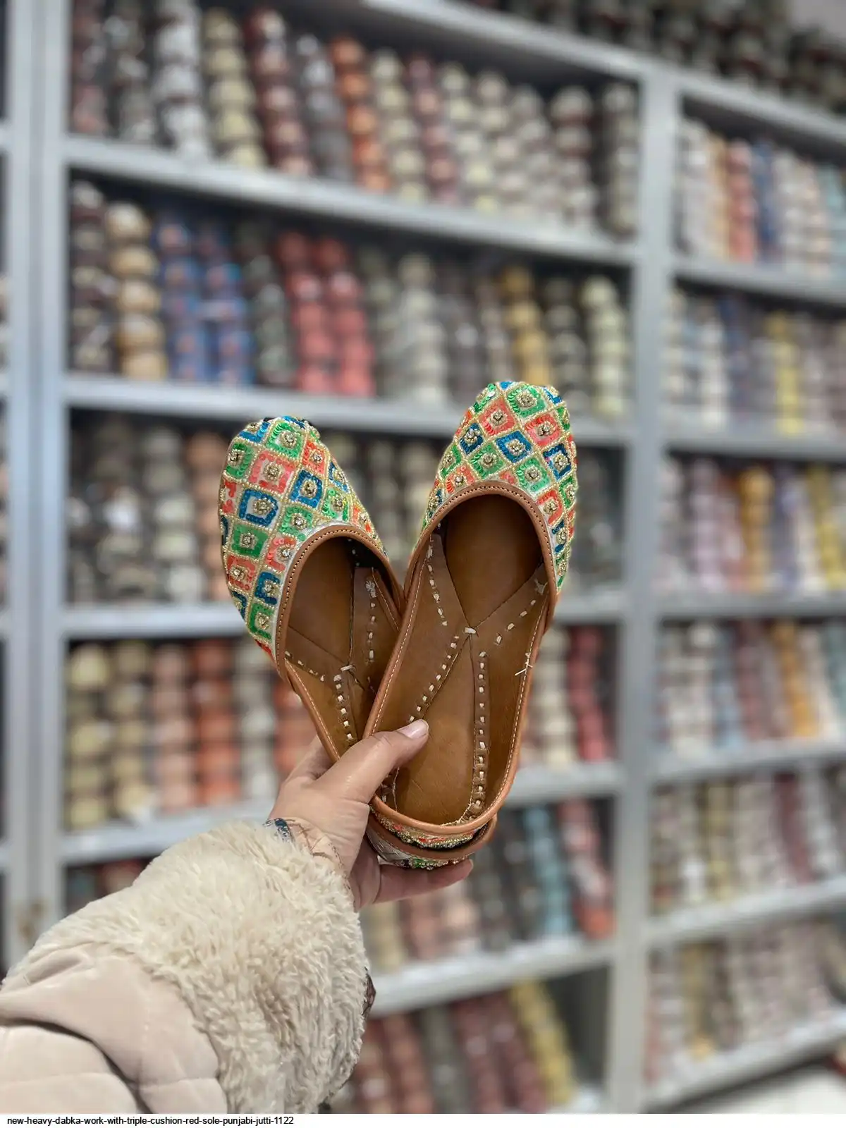 NEW HEAVY DABKA WORK WITH TRIPLE CUSHION RED SOLE PUNJABI JUTTI 1122