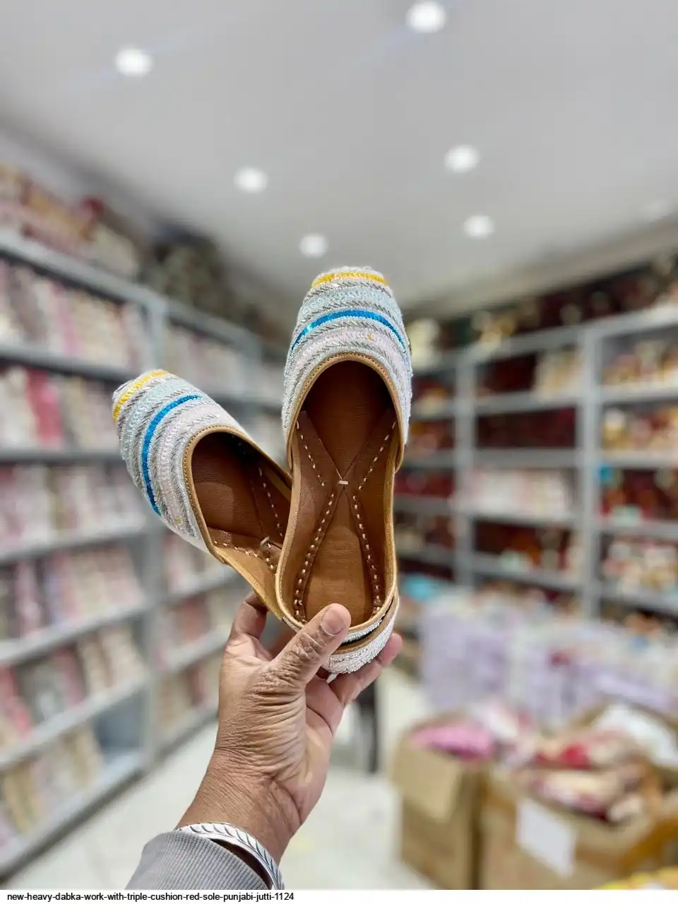 NEW HEAVY DABKA WORK WITH TRIPLE CUSHION RED SOLE PUNJABI JUTTI 1124