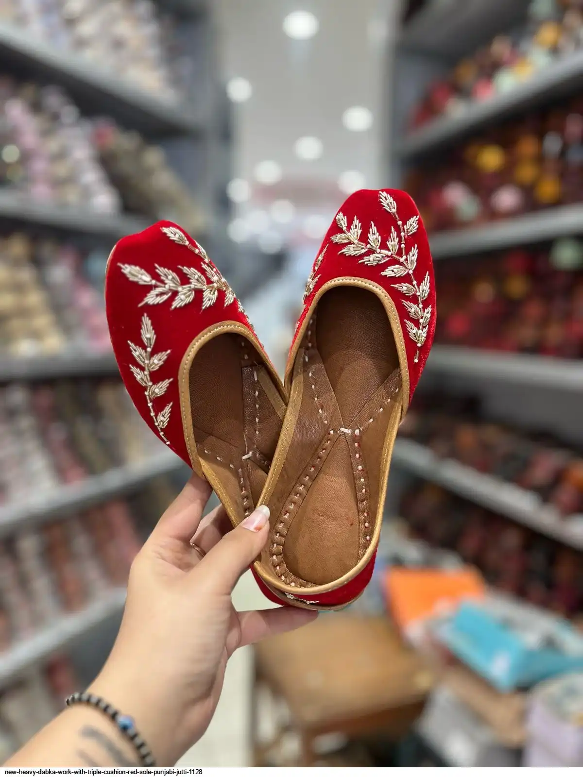 NEW HEAVY DABKA WORK WITH TRIPLE CUSHION RED SOLE PUNJABI JUTTI 1128