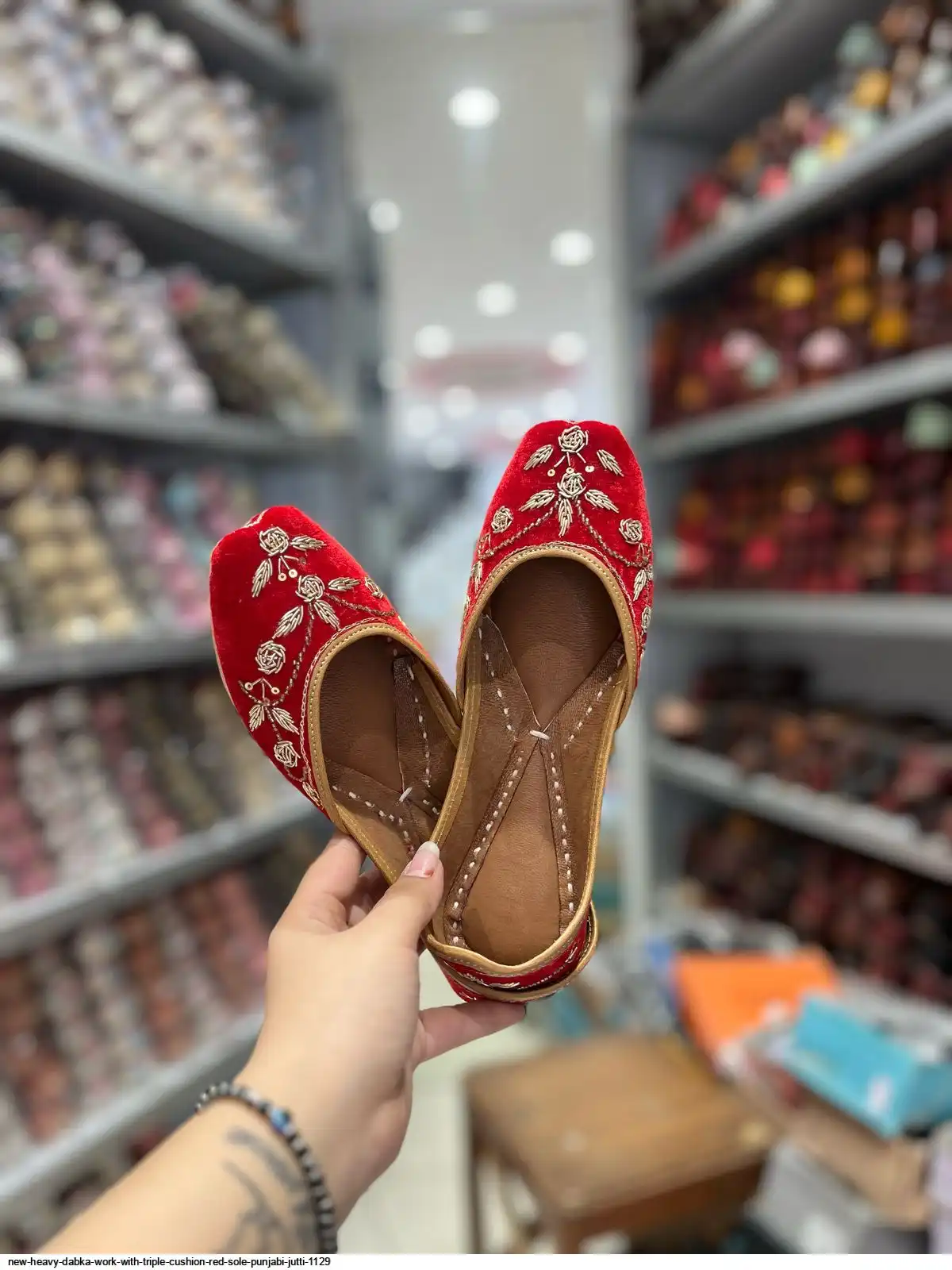 NEW HEAVY DABKA WORK WITH TRIPLE CUSHION RED SOLE PUNJABI JUTTI 1129