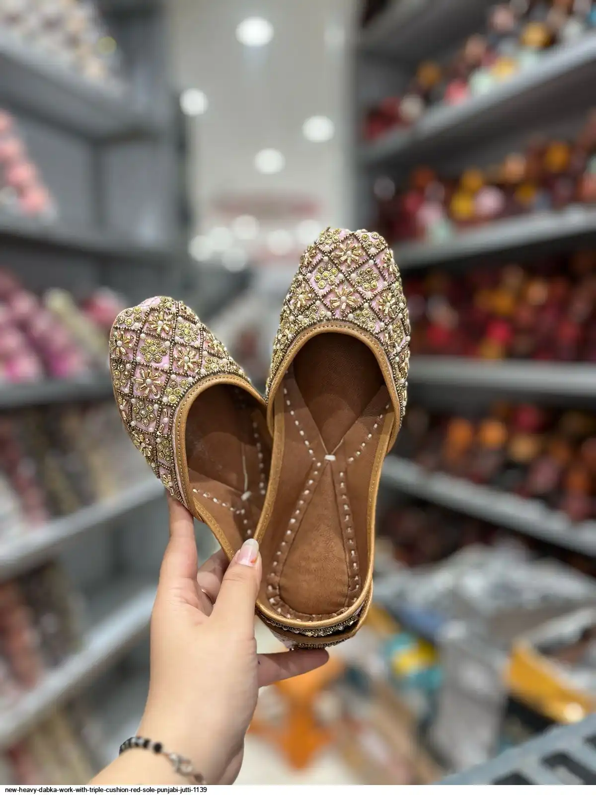 NEW HEAVY DABKA WORK WITH TRIPLE CUSHION RED SOLE PUNJABI JUTTI 1139