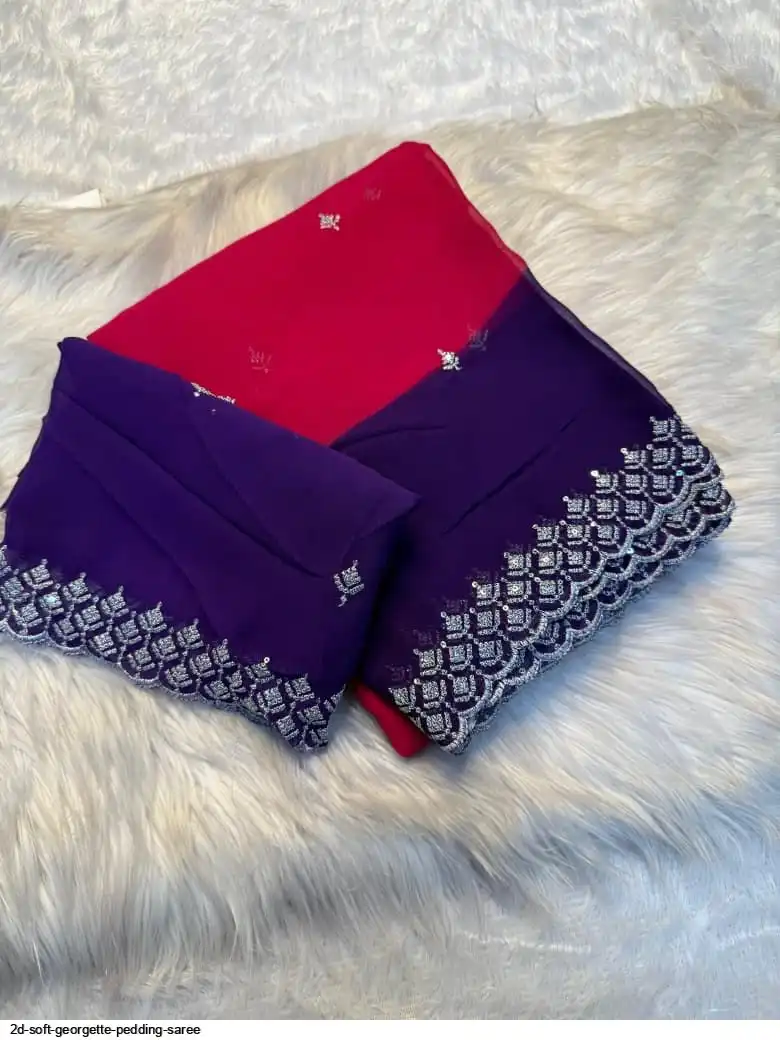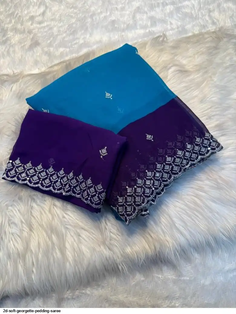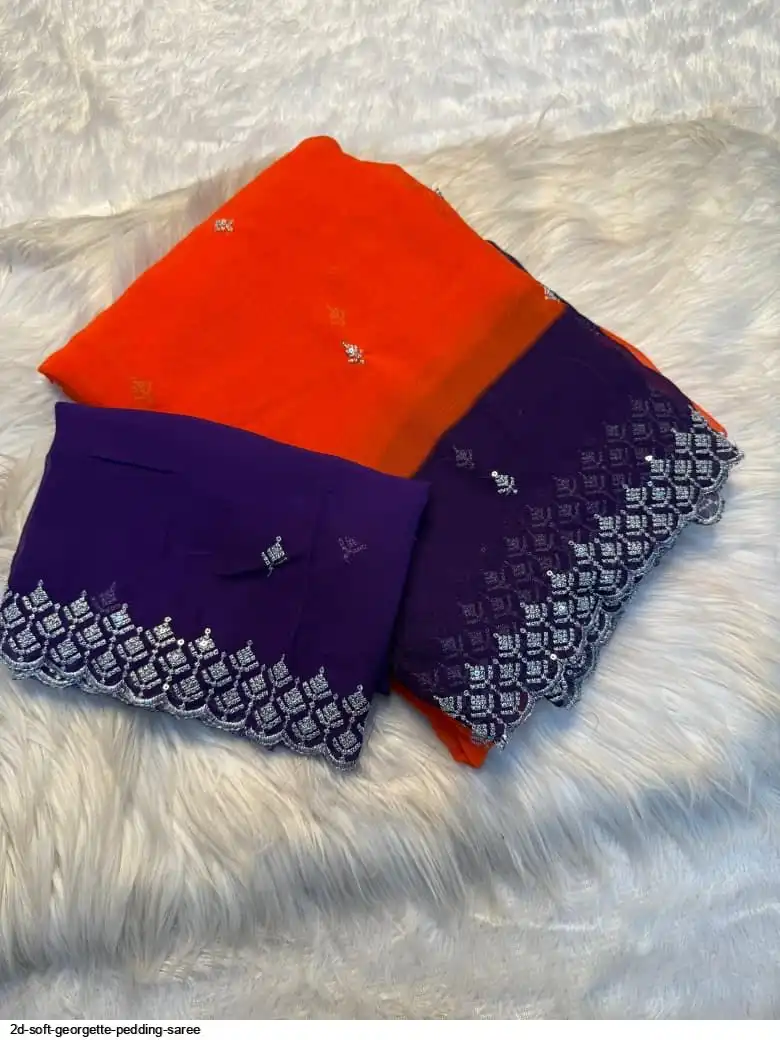 Soft Georgette pedding saree with embroidery work with 2D concept with running blouse