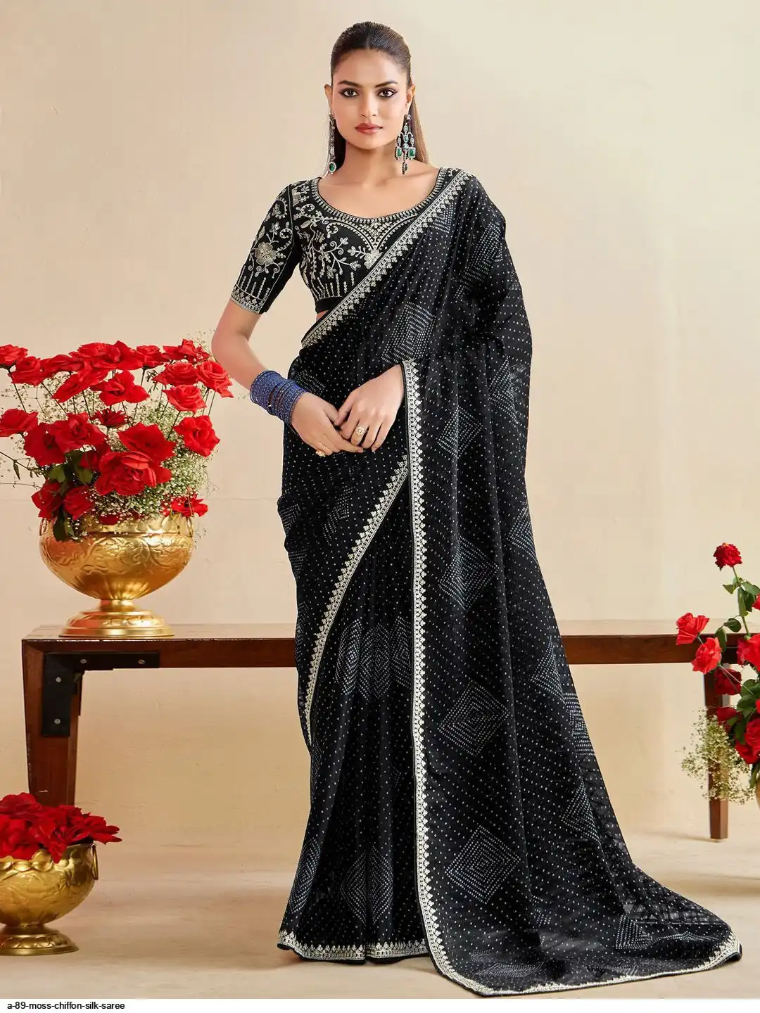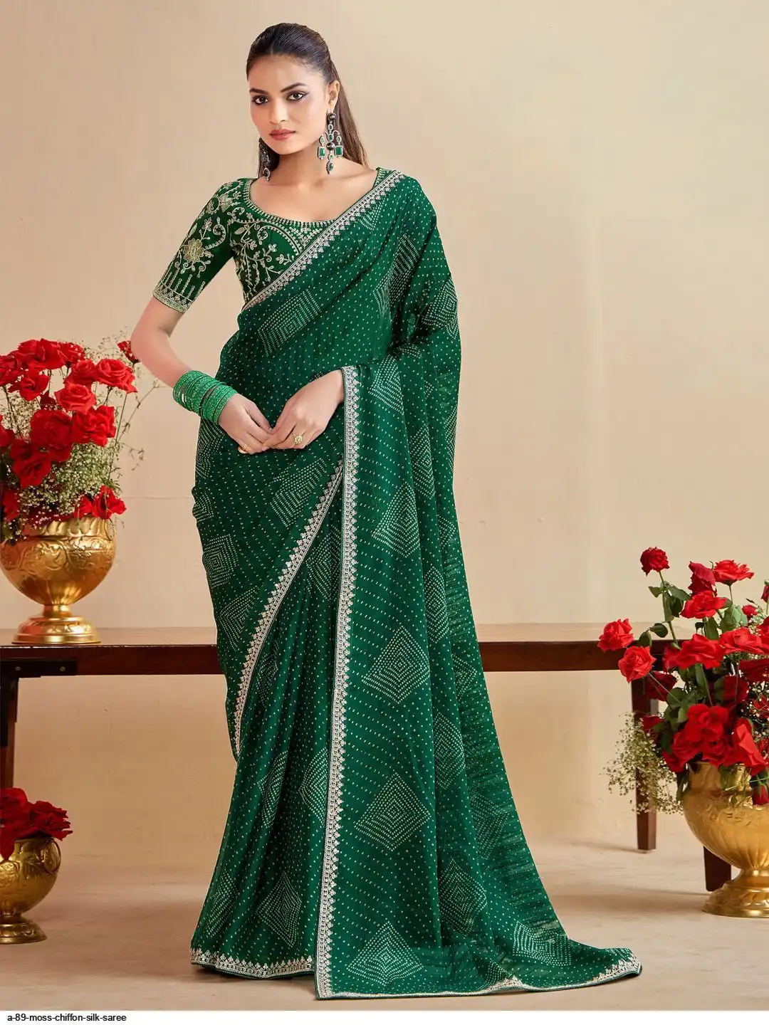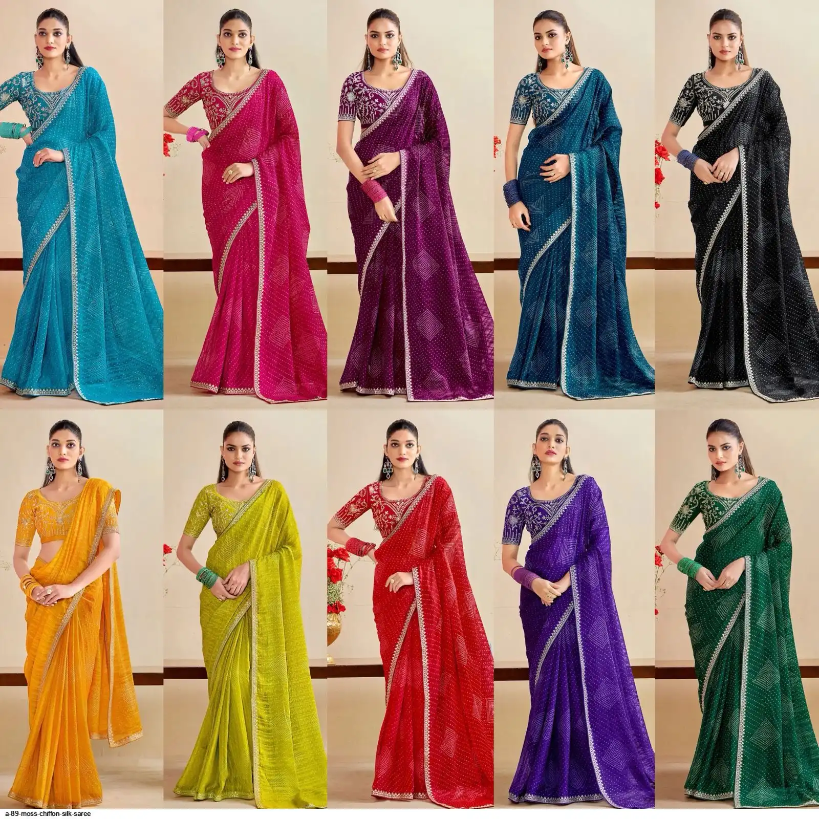 PATTERN- BANDHNI SAREE WITH EMBROIDERY WORK LACE WITH EMBROIDERY WORK BLOUSE
