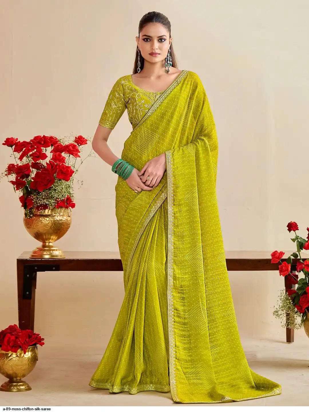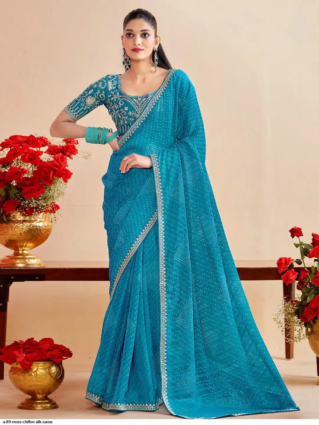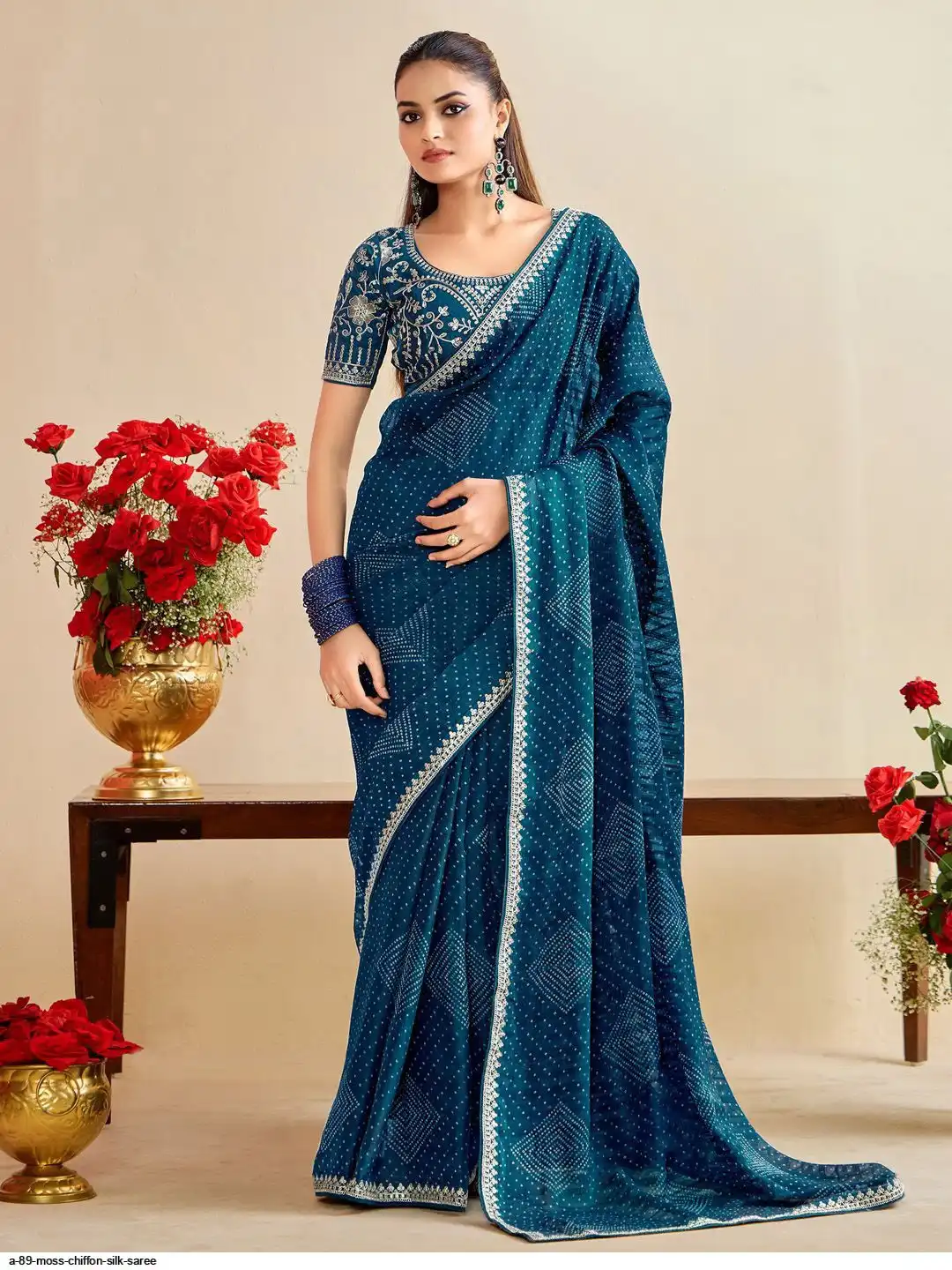 PATTERN- BANDHNI SAREE WITH EMBROIDERY WORK LACE WITH EMBROIDERY WORK BLOUSE