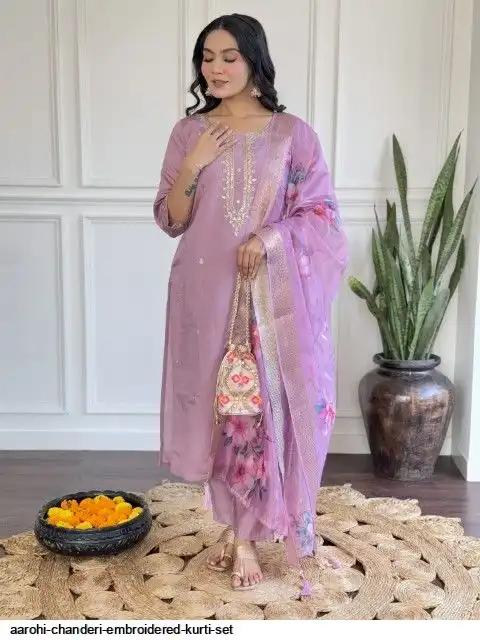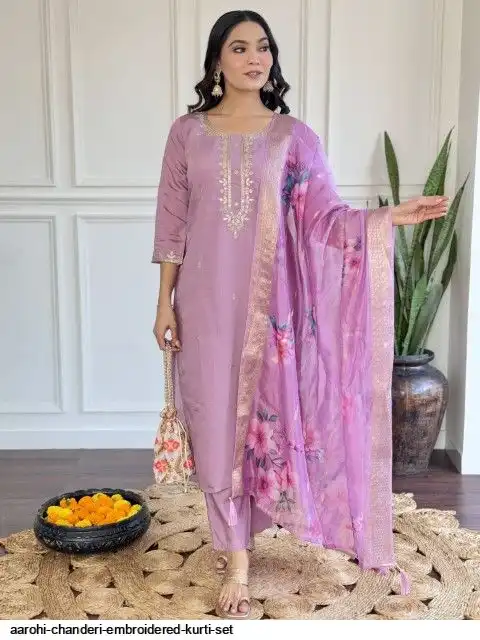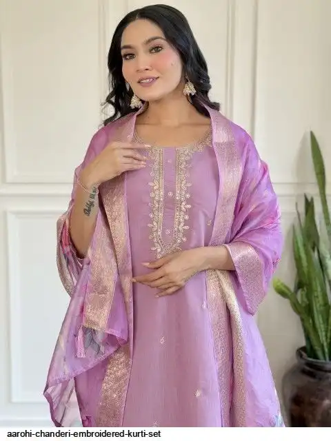 Women Embroidered CHANDERI & Jacquard Butti DUPAATA SET