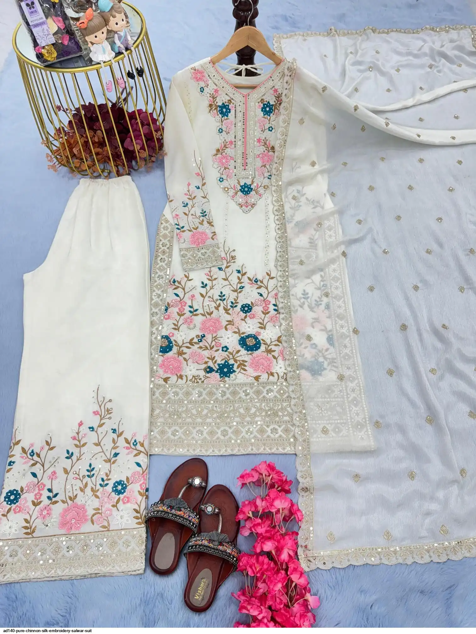 AD140 PURE CHINNON SILK EMBROIDERY SALWAR SUIT B