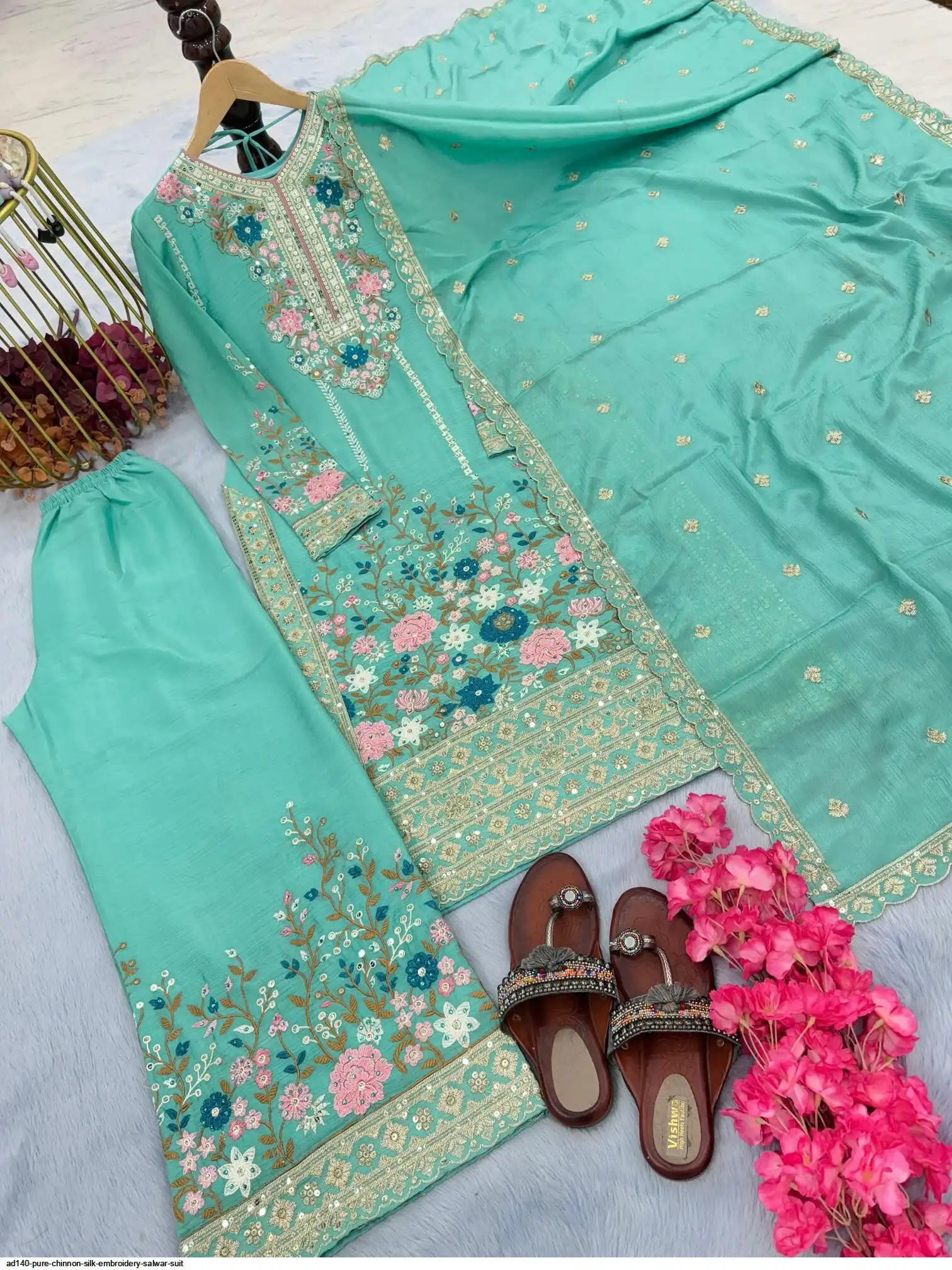 Dupatta Fabric:Heavy Chinon Silk With Embroidery 5 mm Sequence Work With Cutwork