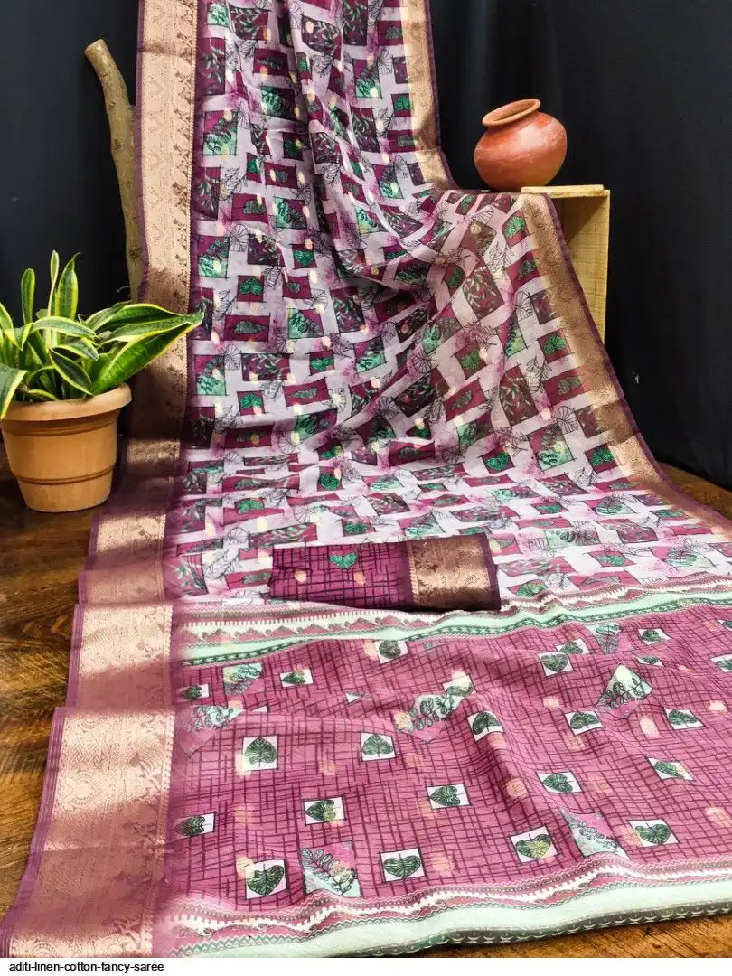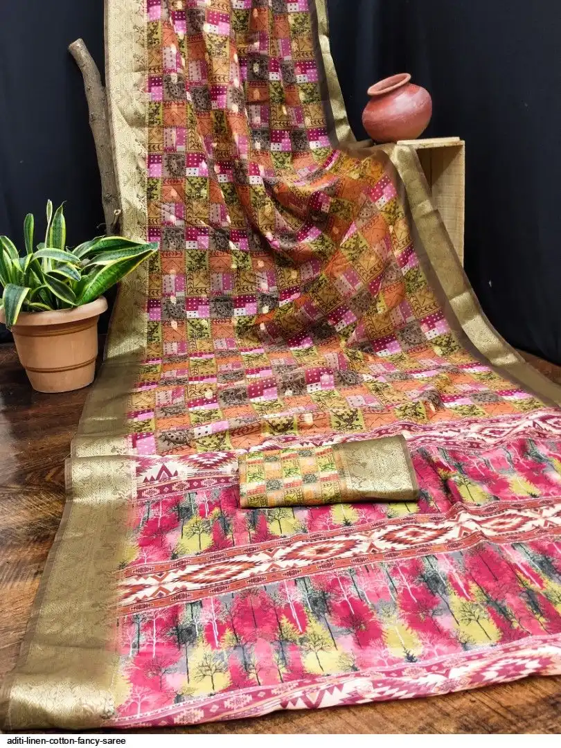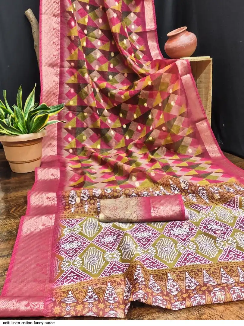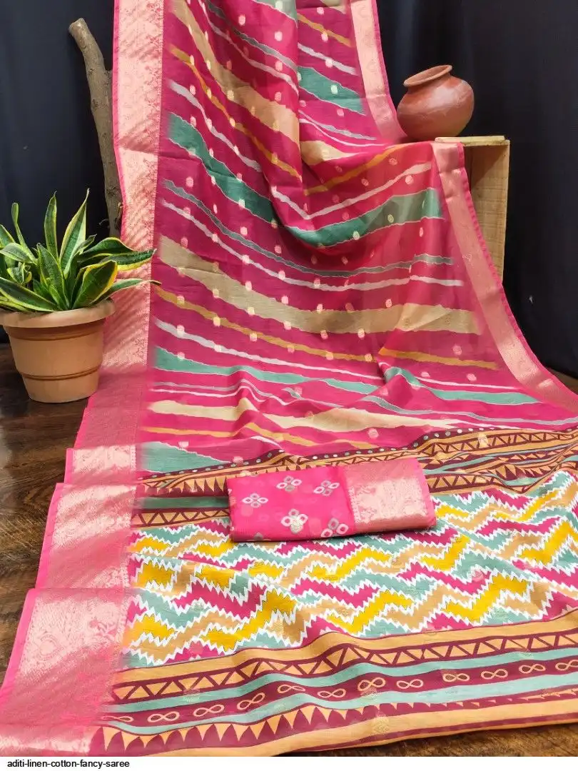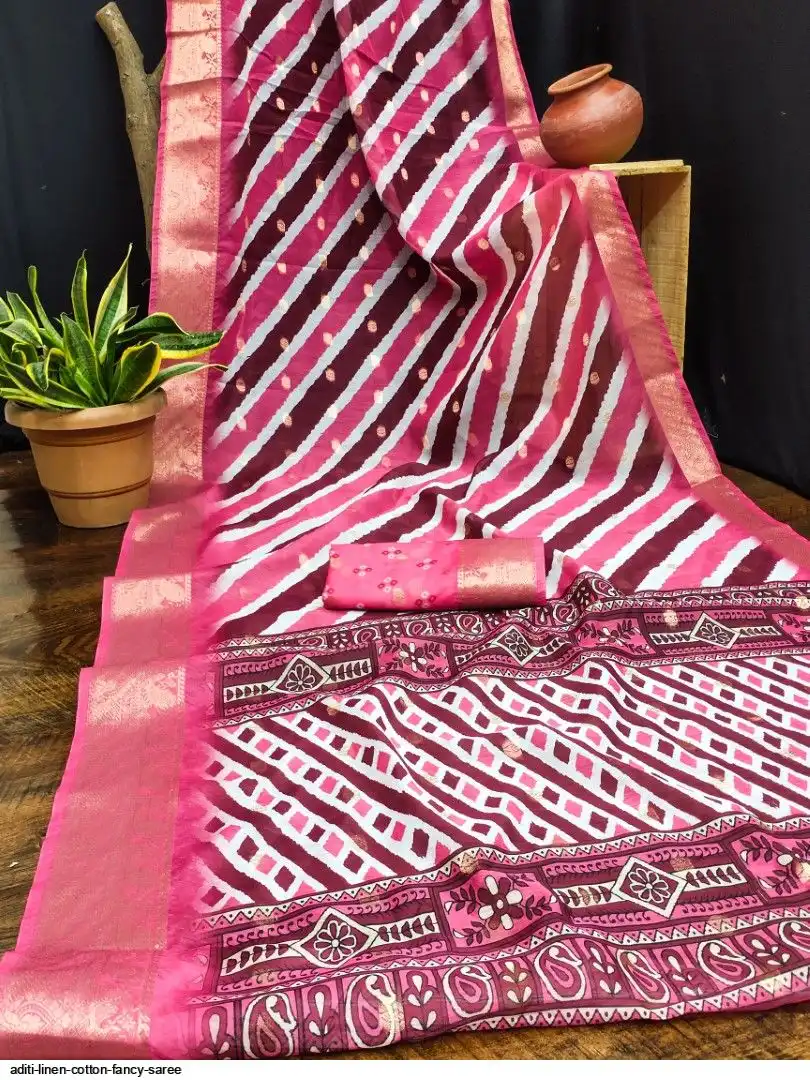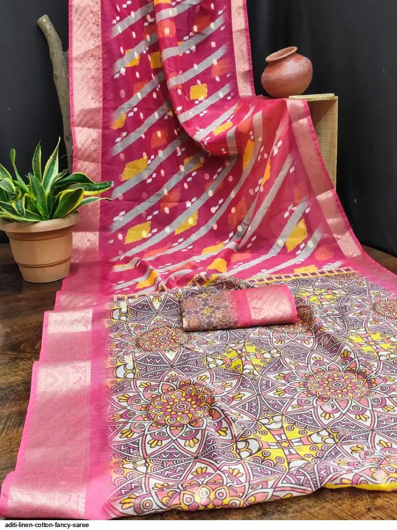 Here is highly premium and pure authentic Bandhej Digital Printed linen cotton sarees woven border