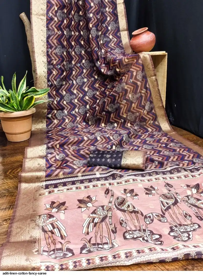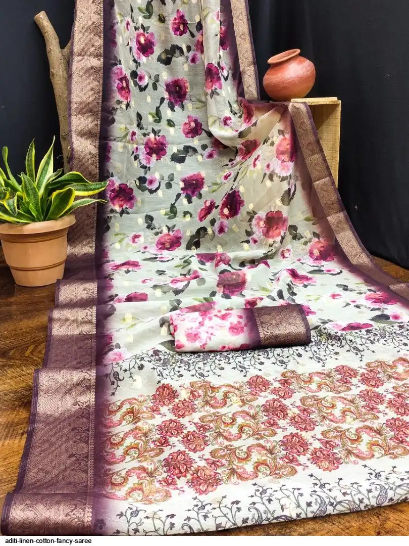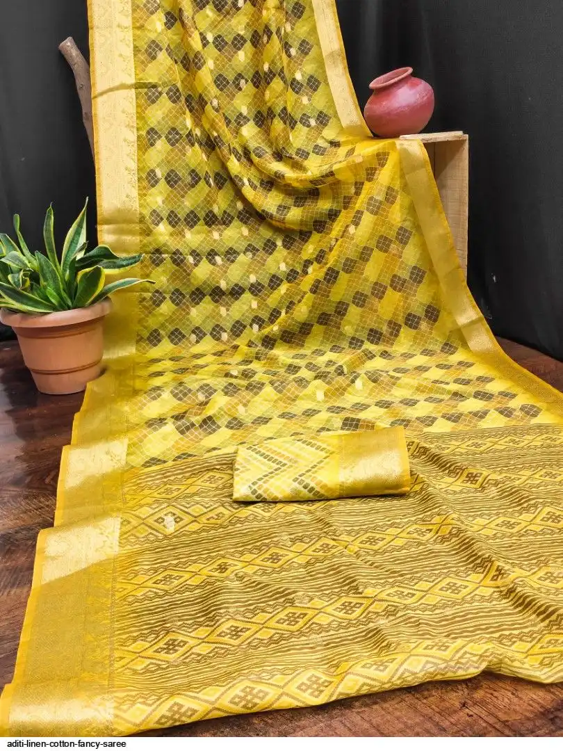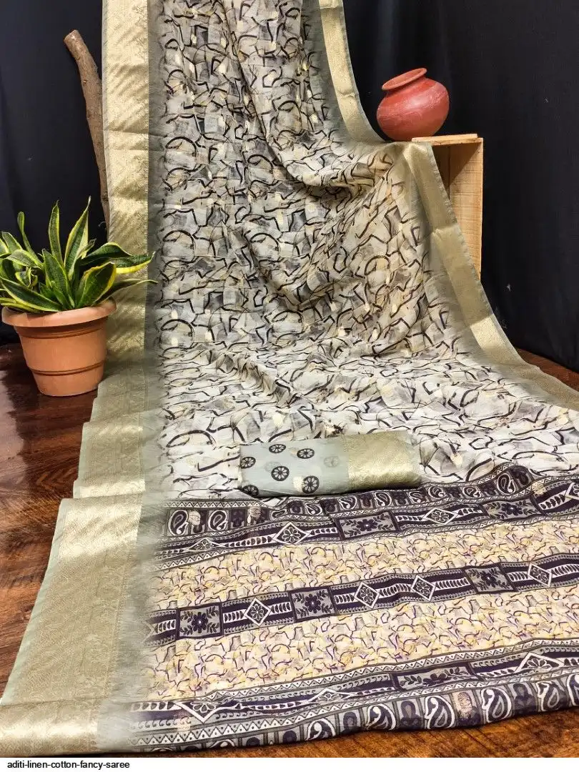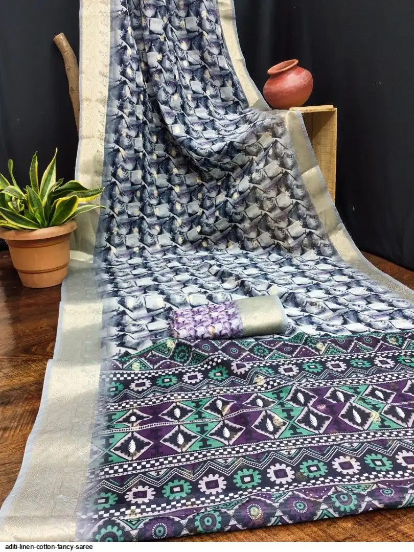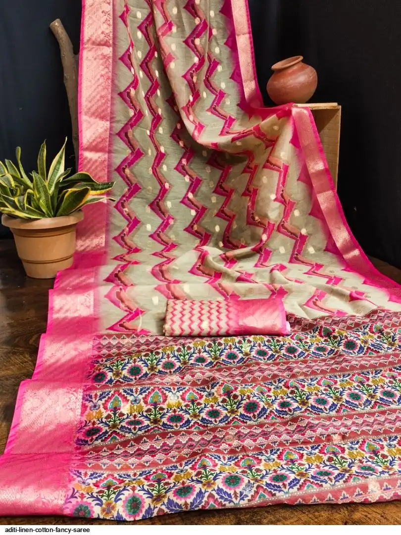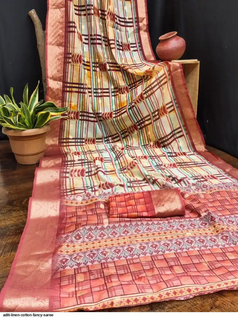 Here is highly premium and pure authentic Bandhej Digital Printed linen cotton sarees woven border