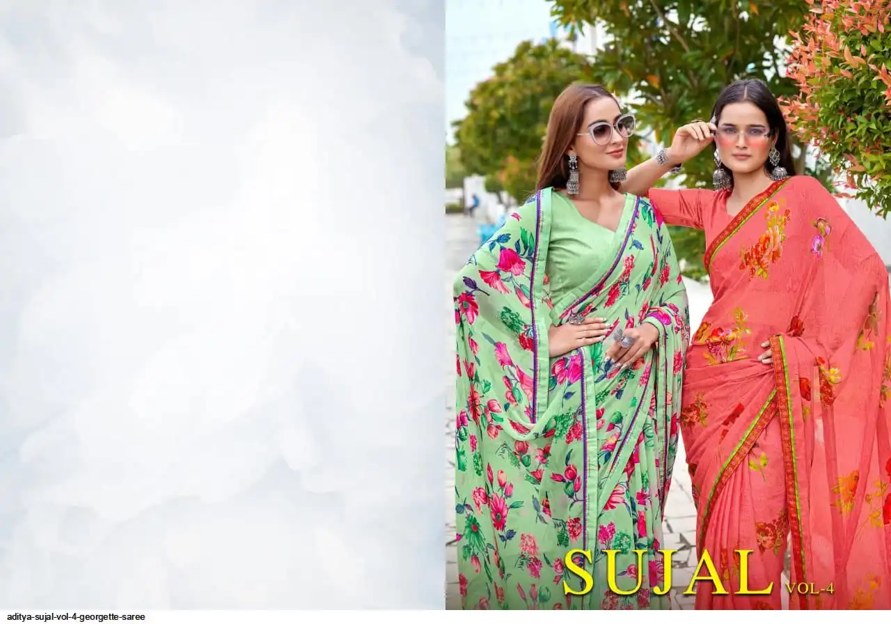▶️ Fabric Details - Georgette wetless With Digital Print less & Banglore silk Blouse 👚