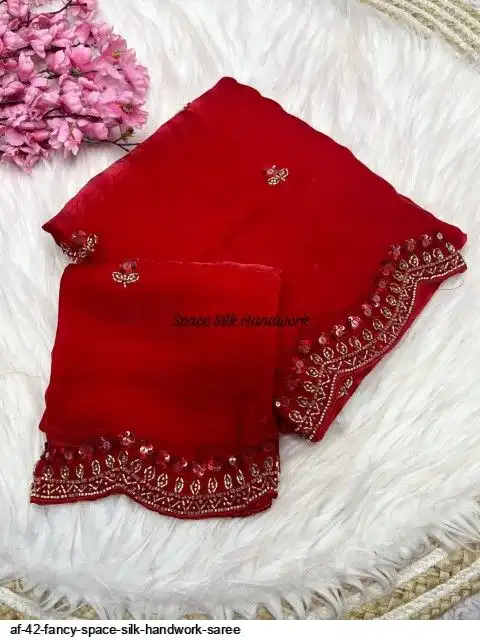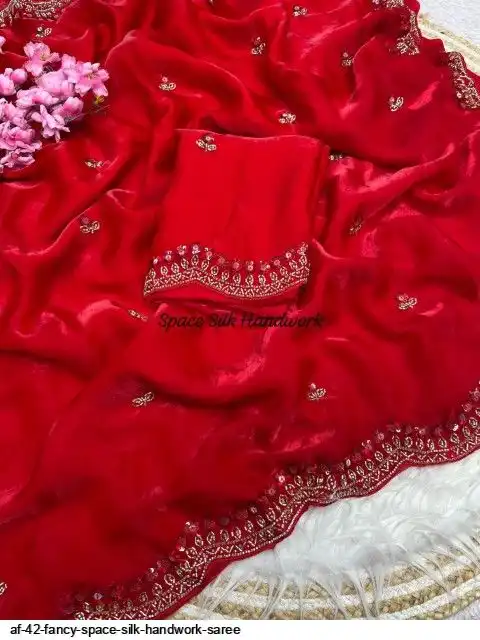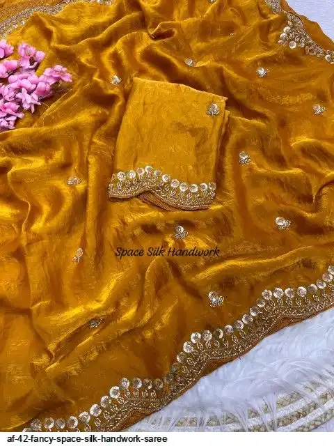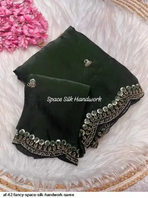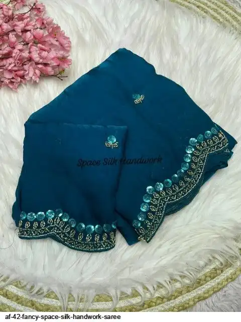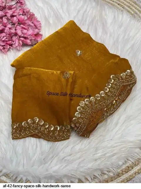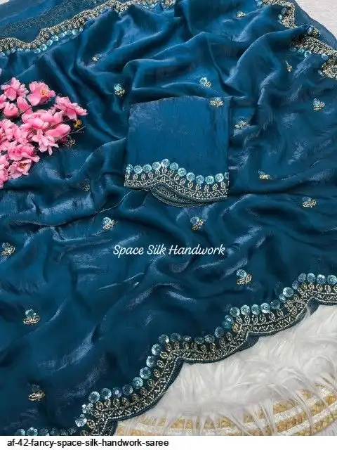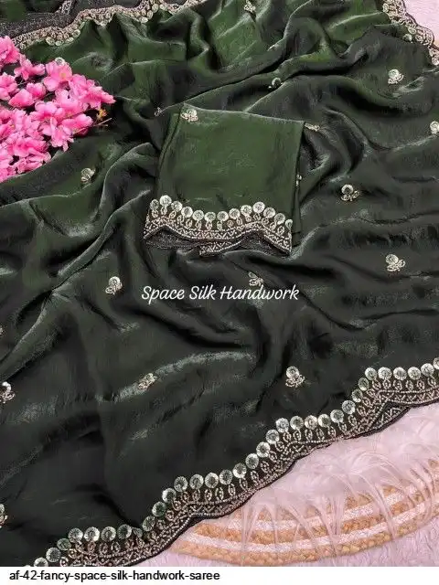 soft fancy space silk sequins saree with cut-work and handwork along with ready-made designer blouse