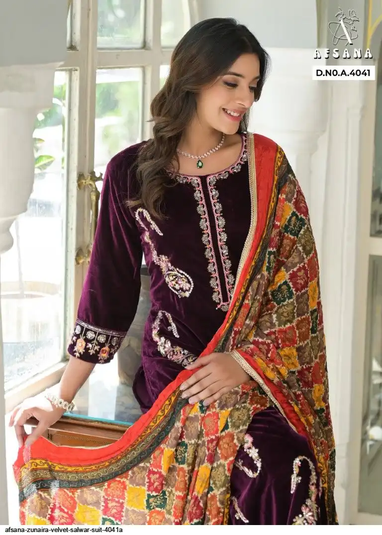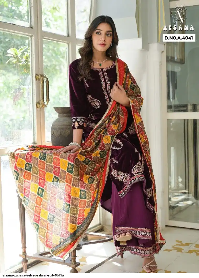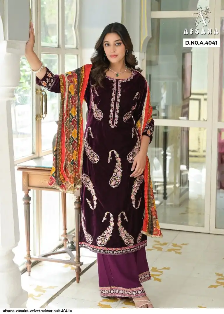 AFSANA ZUNAIRA VELVET SALWAR SUIT 4041A