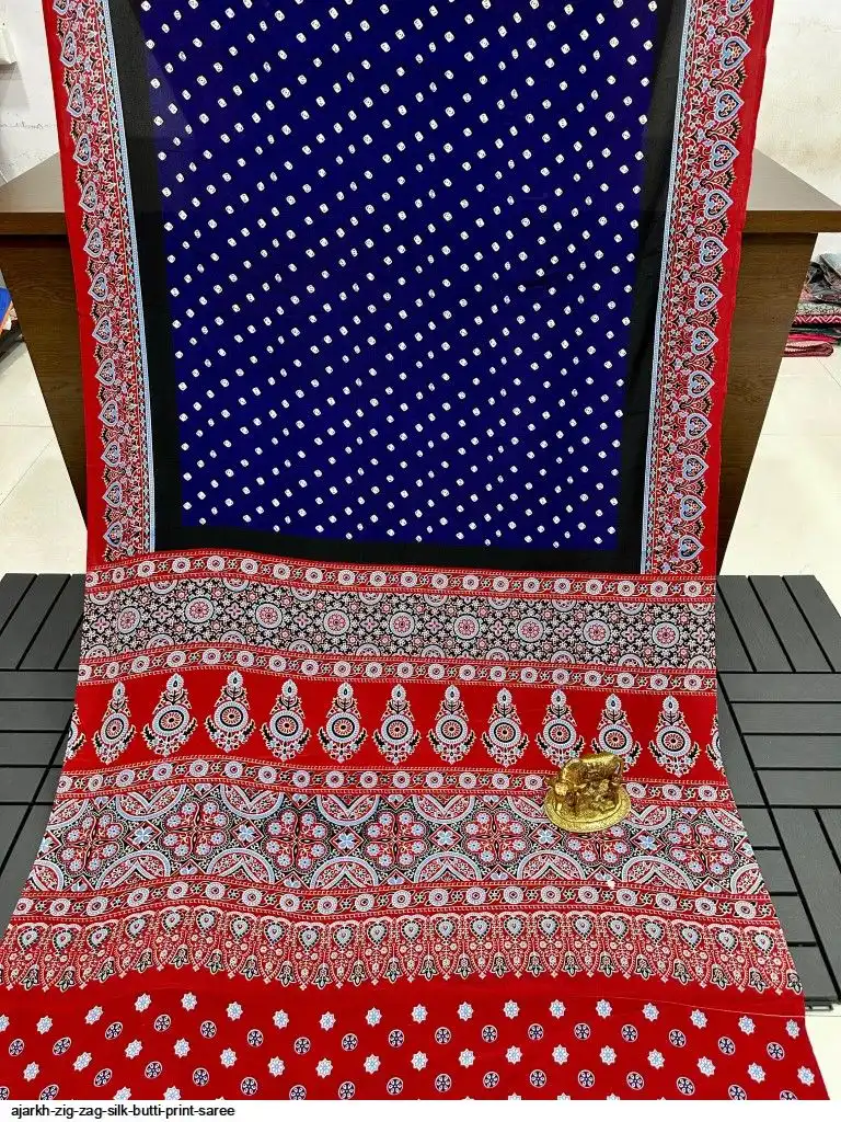 AJARKH ZIG ZAG SILK BUTTI PRINT SAREE B