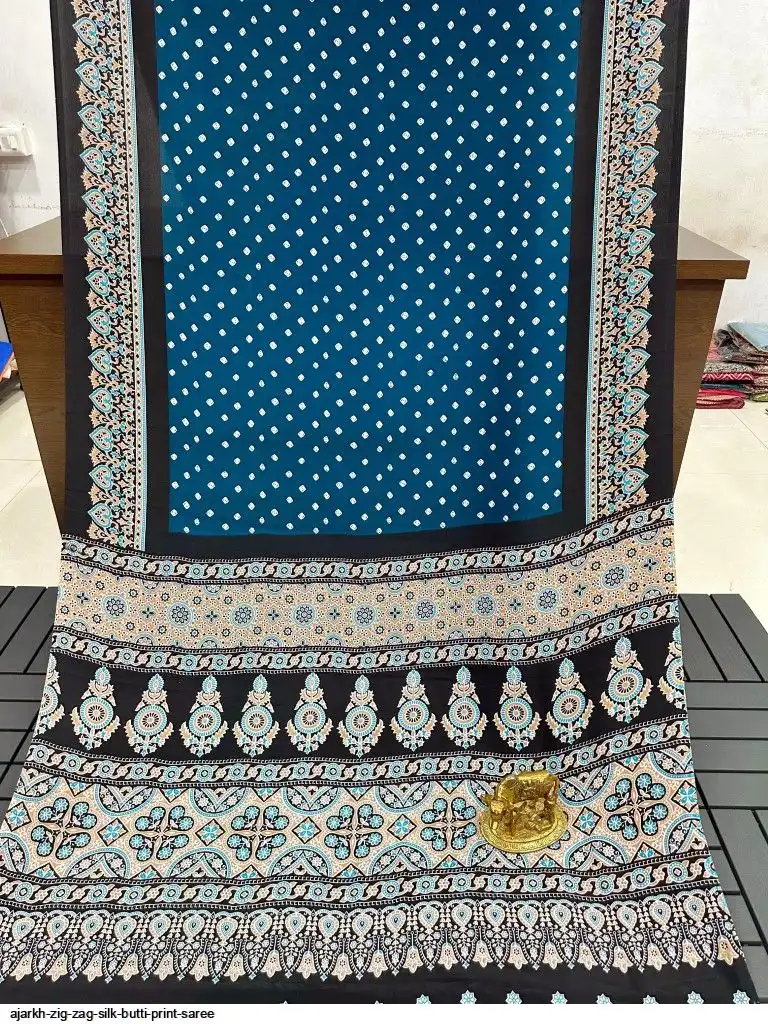 AJARKH ZIG ZAG SILK BUTTI PRINT SAREE C