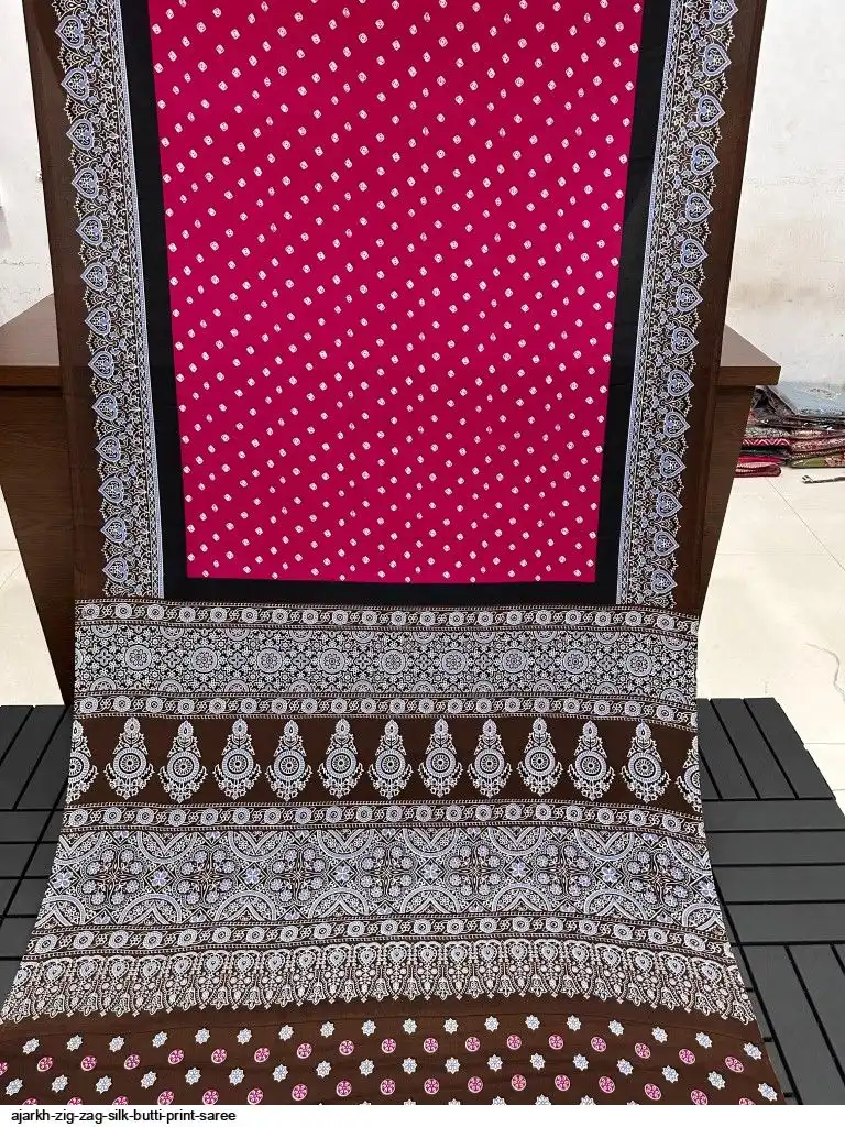 AJARKH ZIG ZAG SILK BUTTI PRINT SAREE D