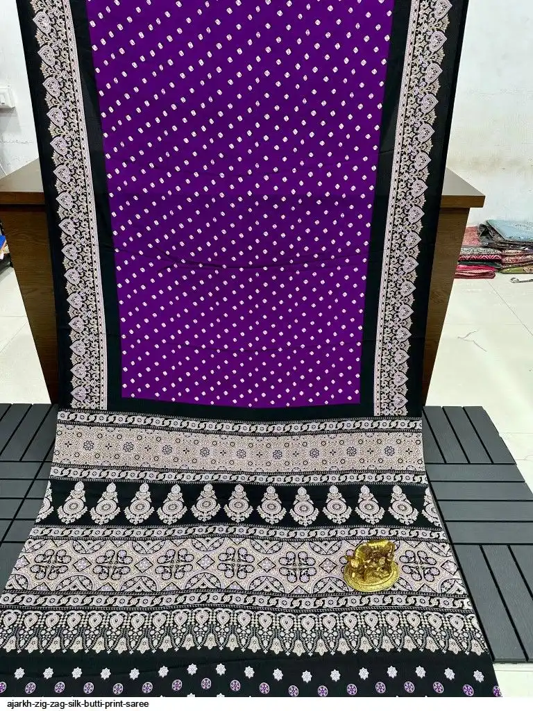 AJARKH ZIG ZAG SILK BUTTI PRINT SAREE E