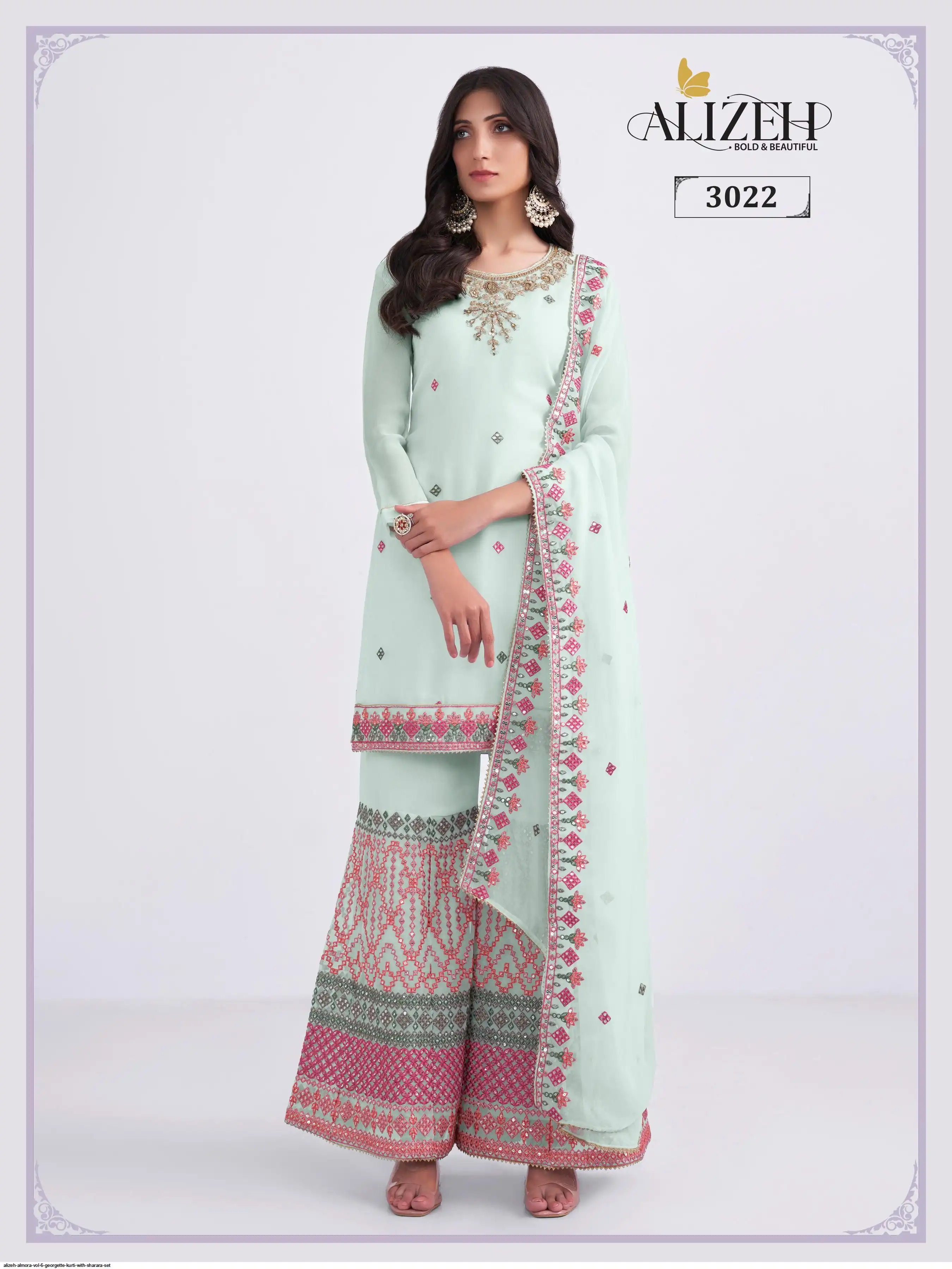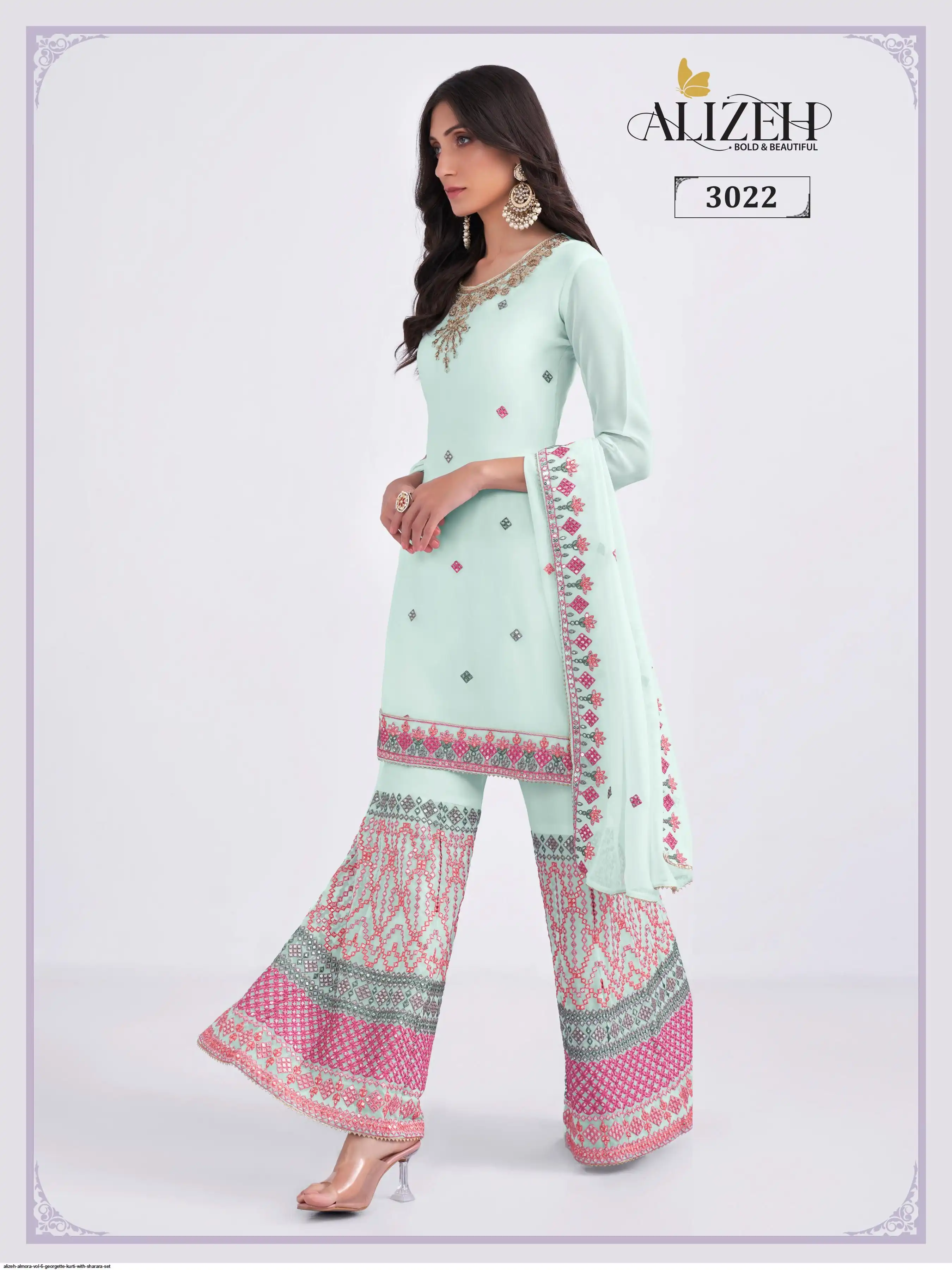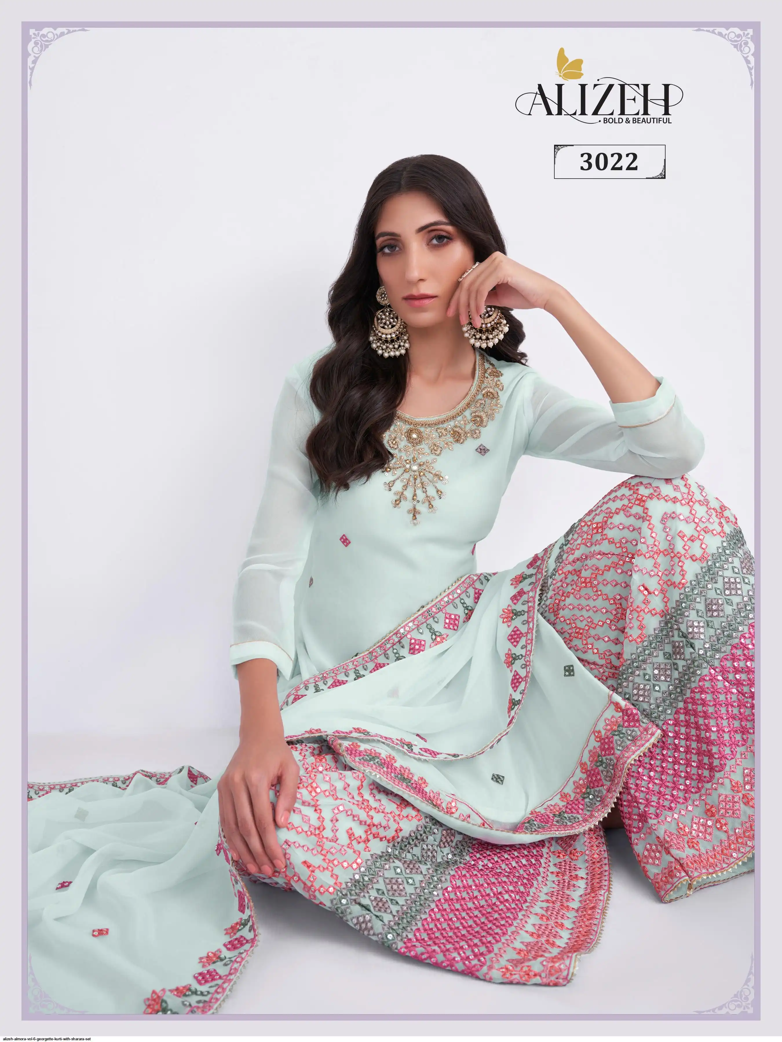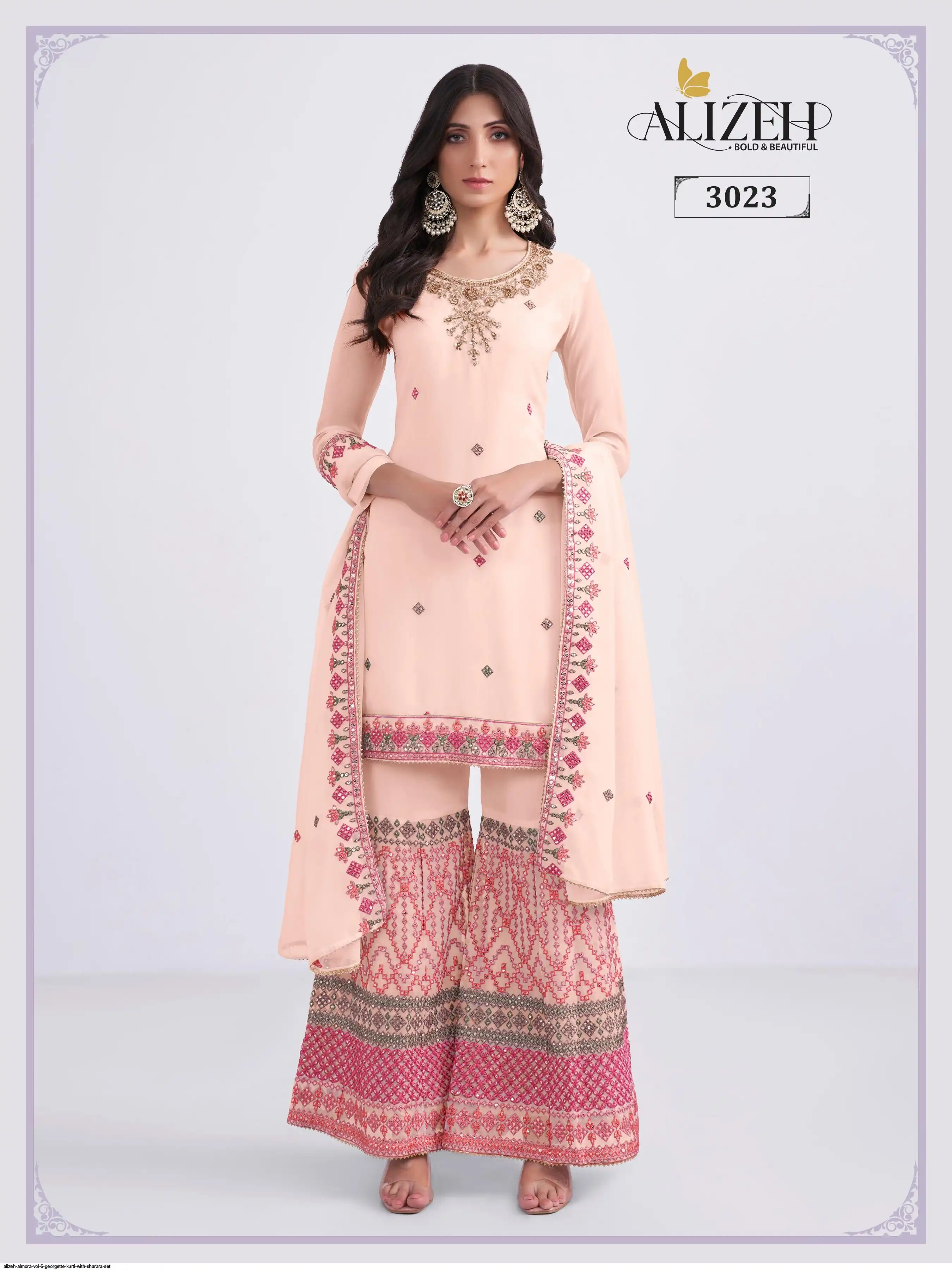 Work: The top features multi-thread, sequins, zari embroidery, and khatli work on the neckline. The sharara has heavy multicolour embroidery, and the dupatta has a two-side border and butti embroidery.