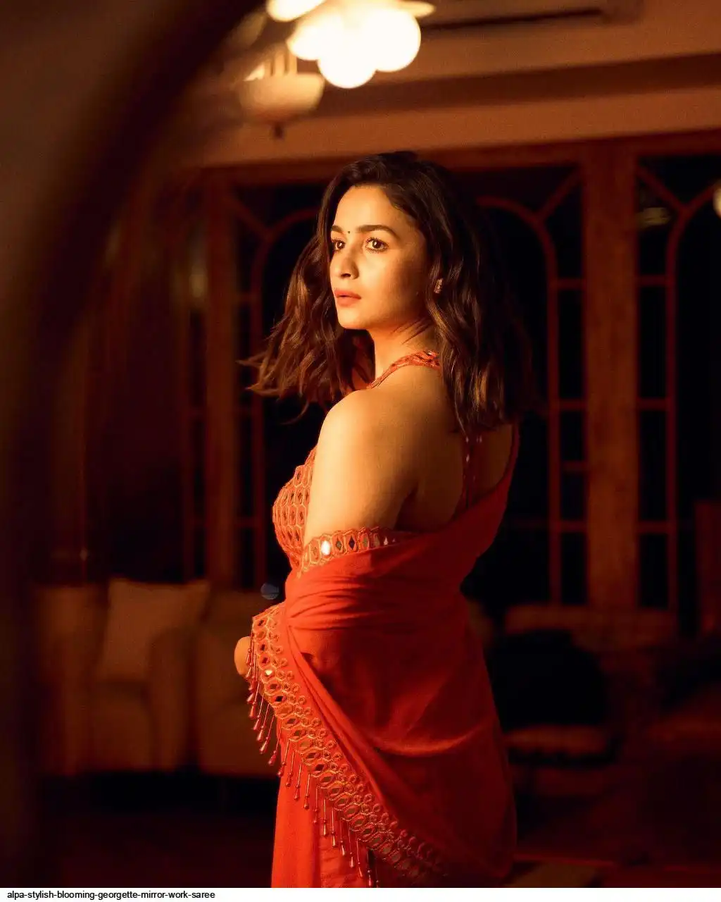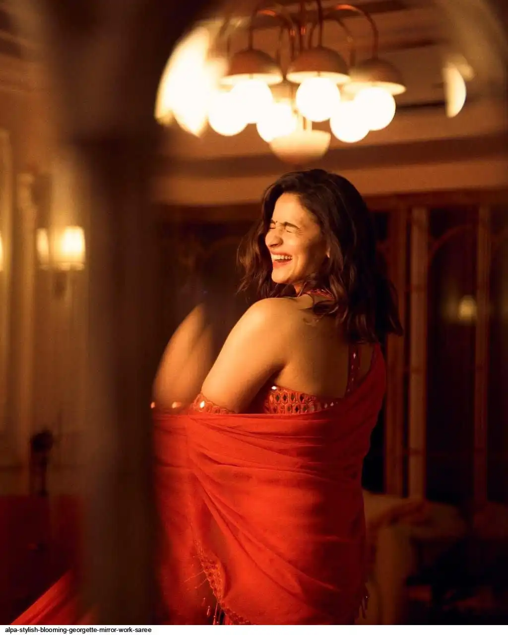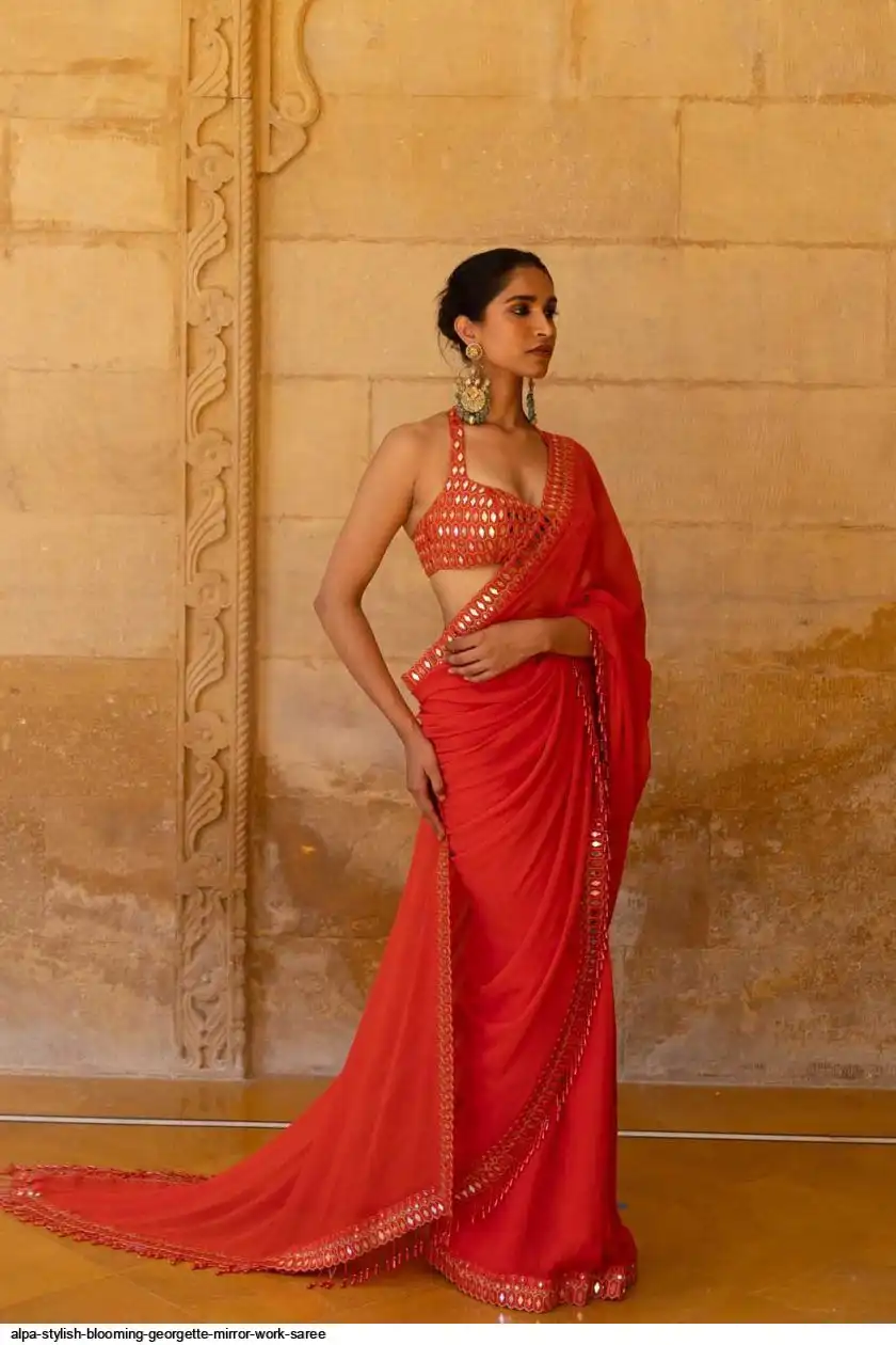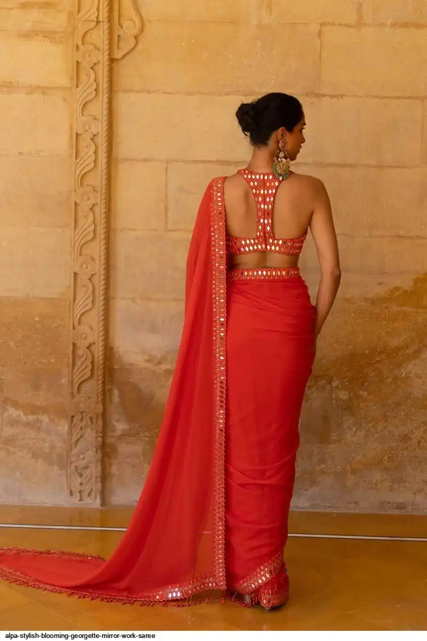 Fabric: PURE BLOOMING GEORGETTE FABRIC SAREE EMBROIDERED WITH HEAVY MIRROR WORK AND LATKANS