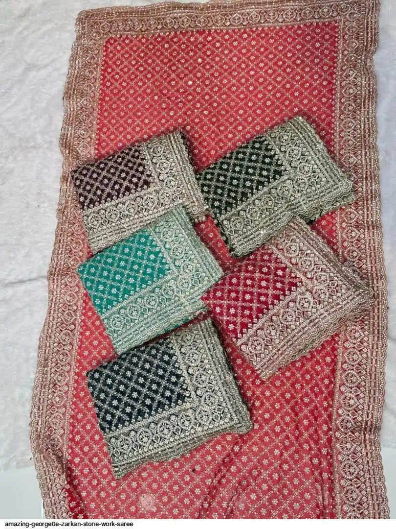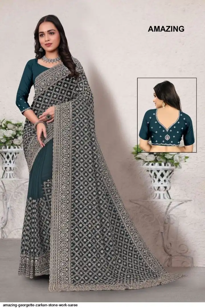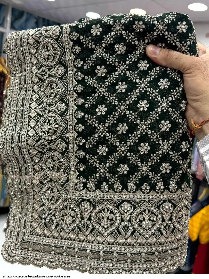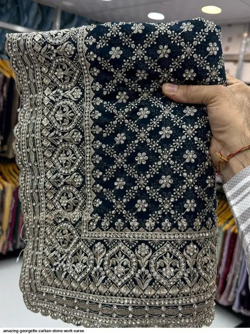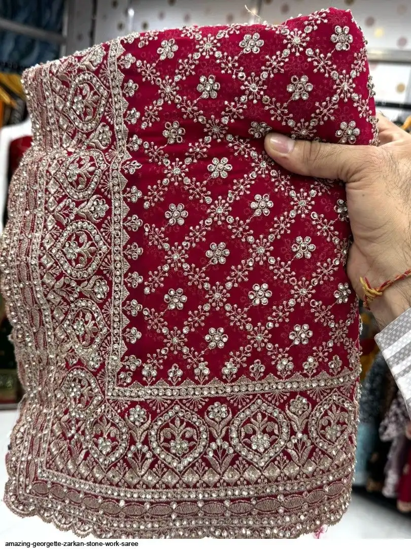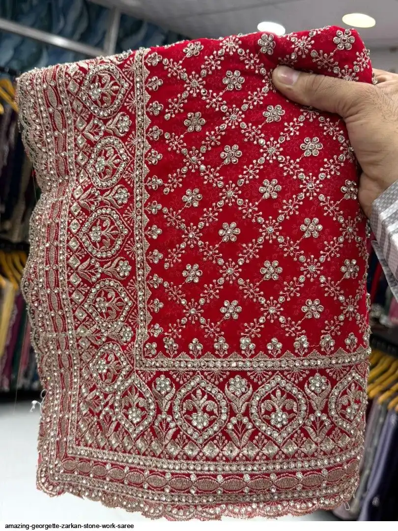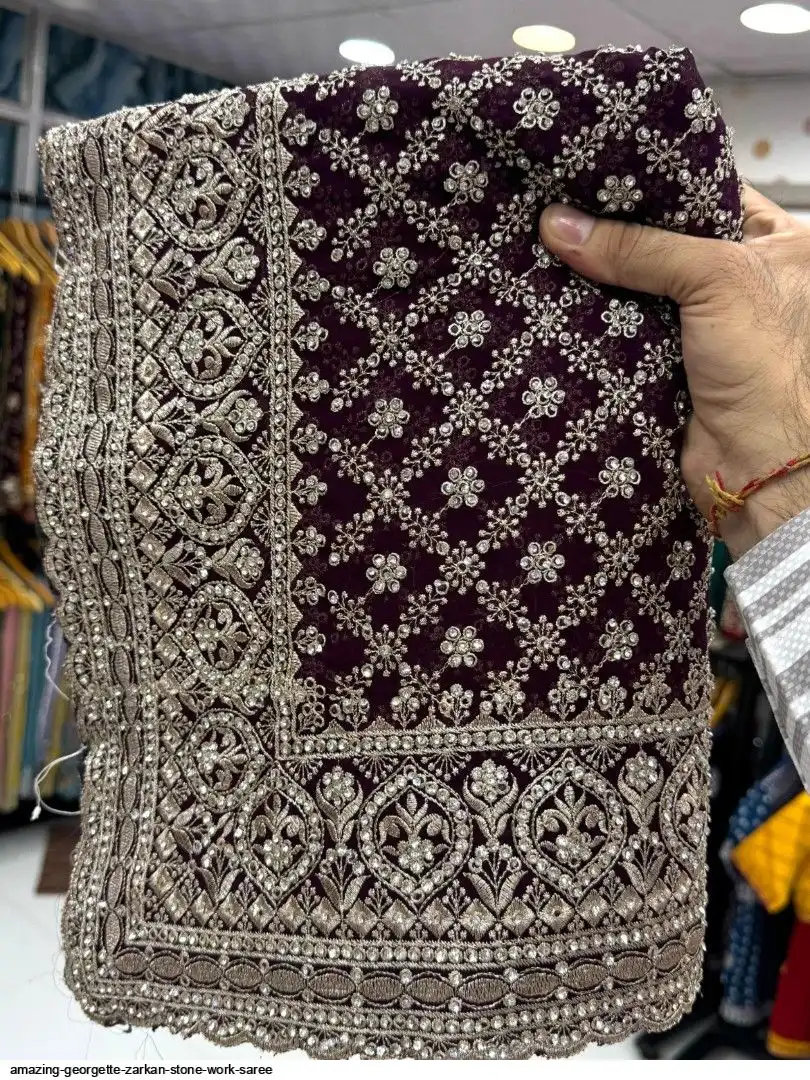Work : Full Heavy Zari Embroidery Work With Heavy Zarkan Stone Work In all over saree