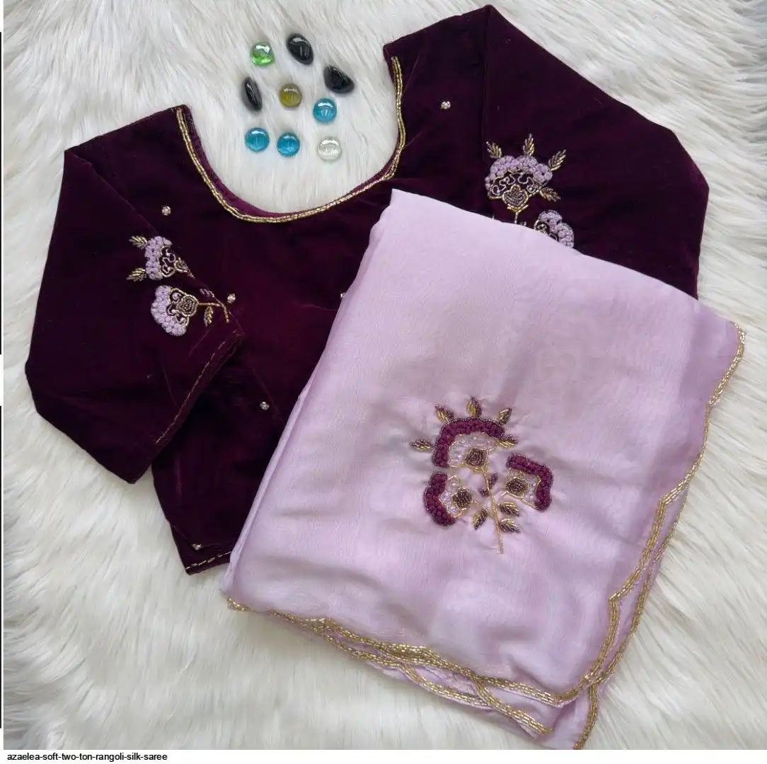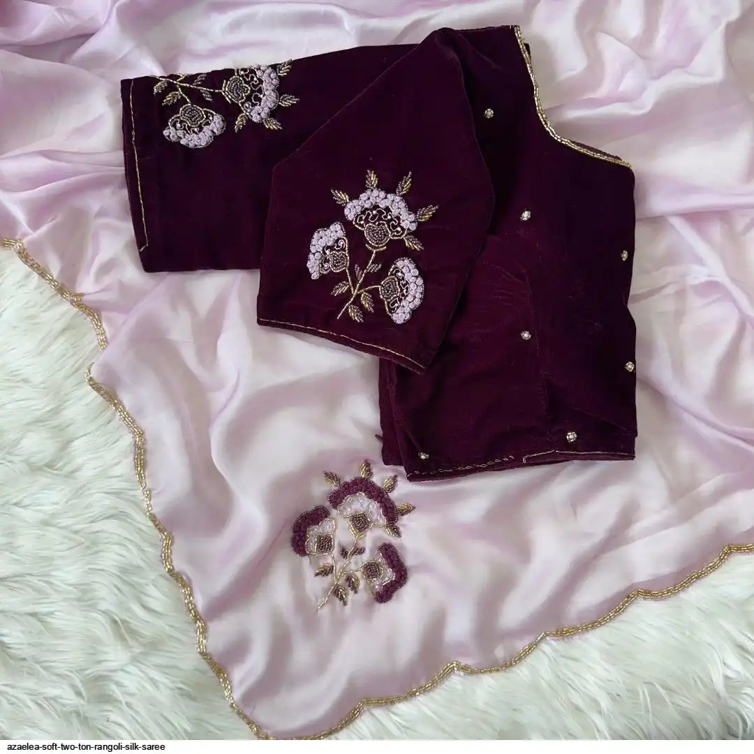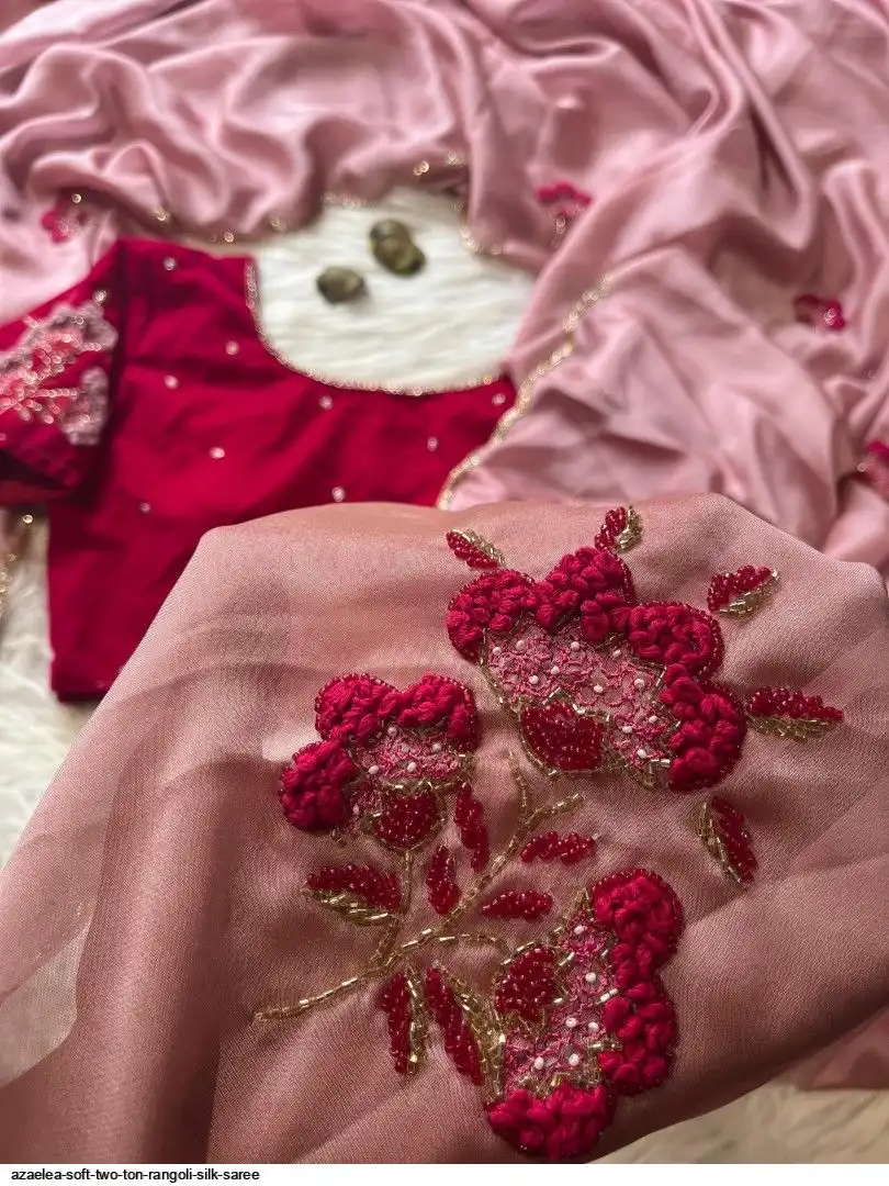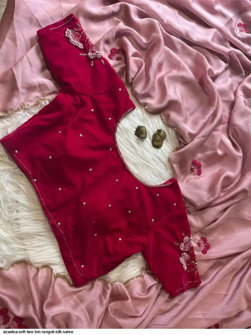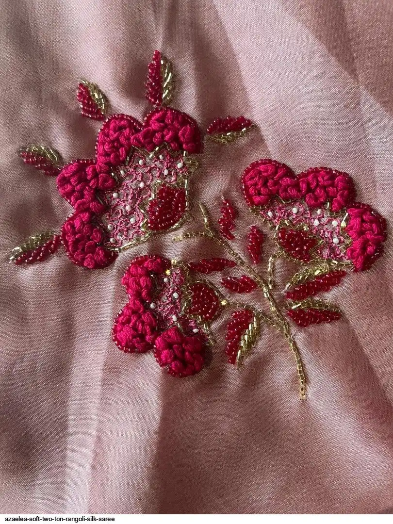 Soft Two Ton Rangoli Silk Cover With Three Layer Cutdana Border And Double Layer Arco Border Having Butta All Over Saree Run With Cutdana, Moti And Resham Thread