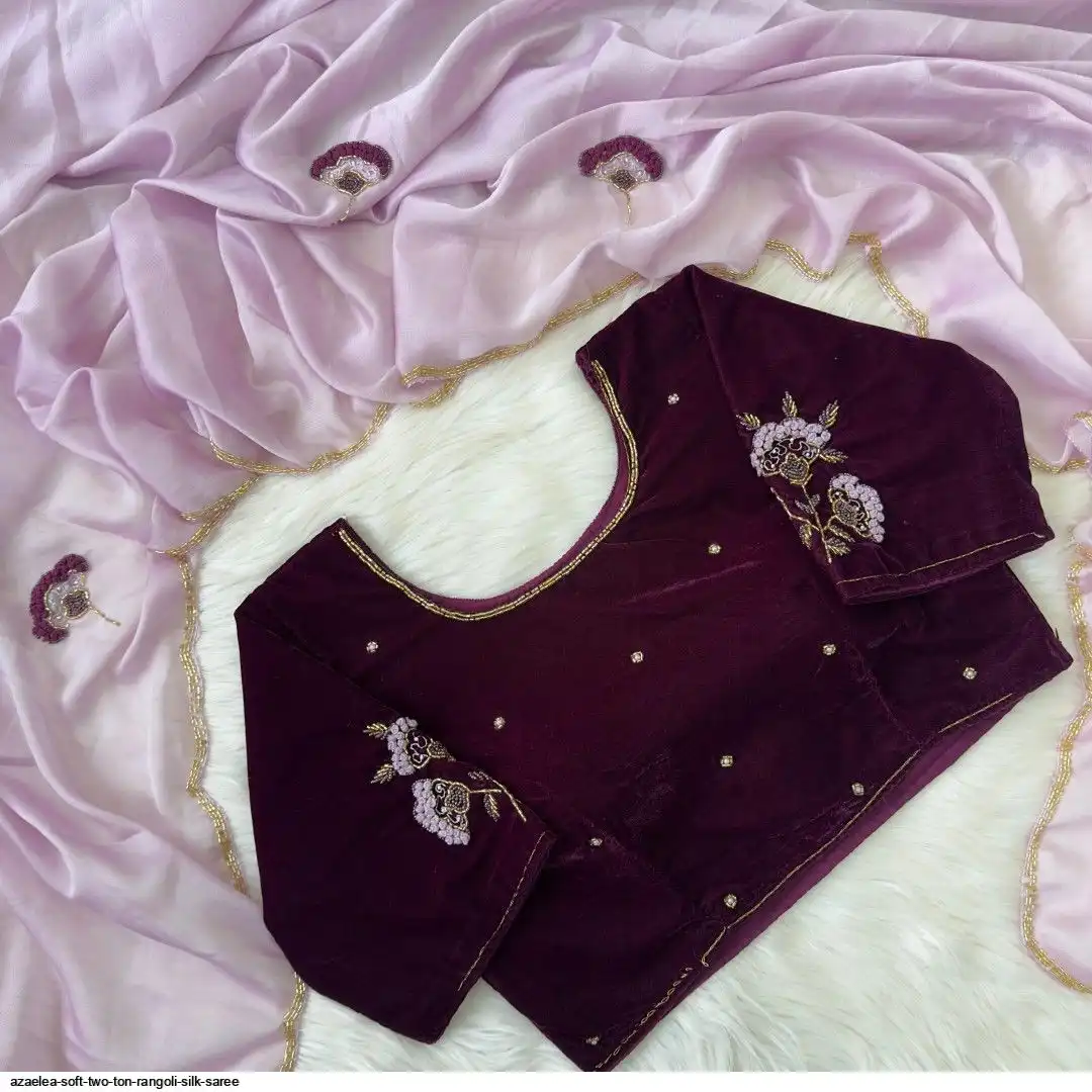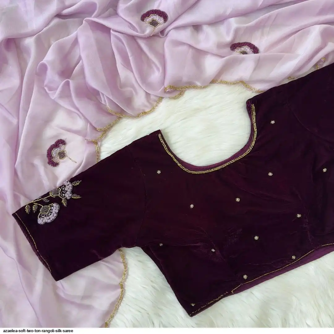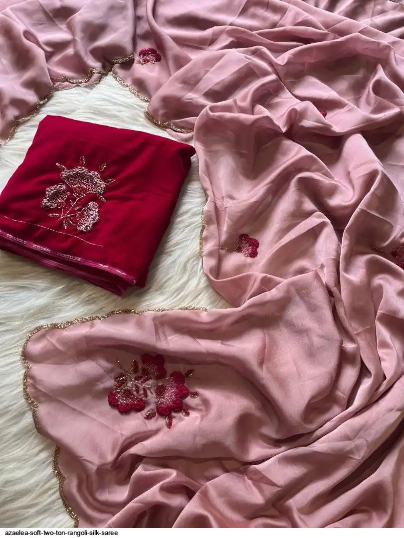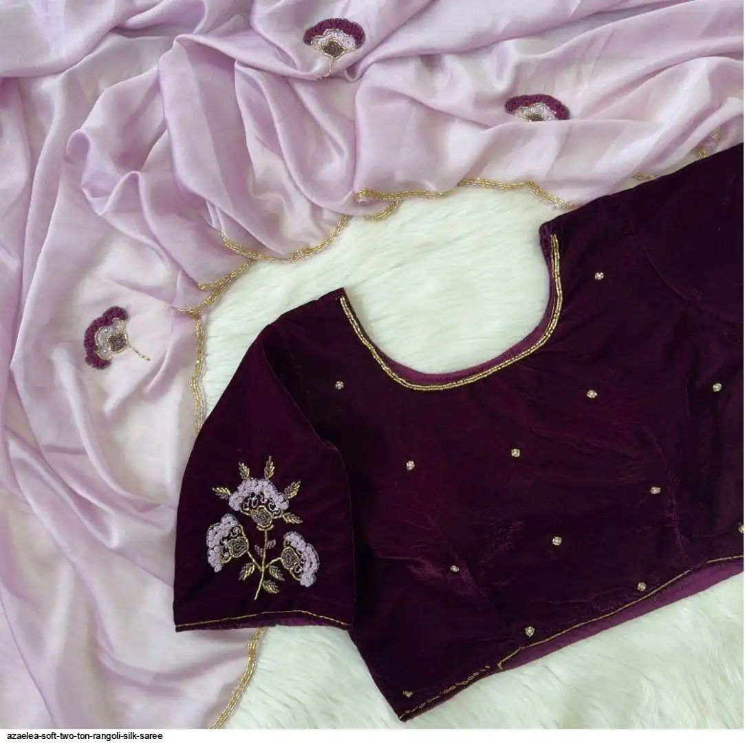 Soft Two Ton Rangoli Silk Cover With Three Layer Cutdana Border And Double Layer Arco Border Having Butta All Over Saree Run With Cutdana, Moti And Resham Thread