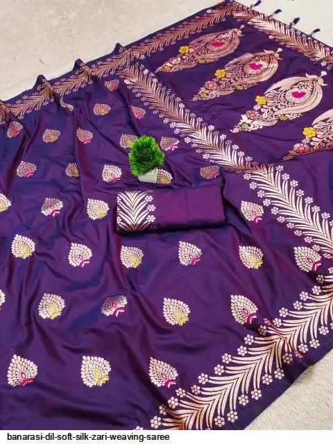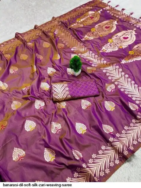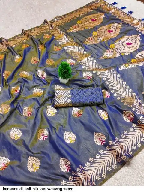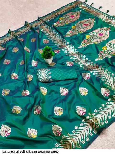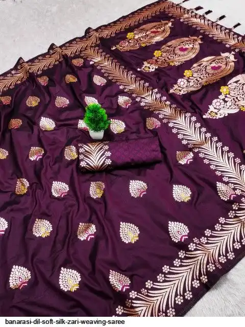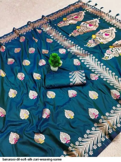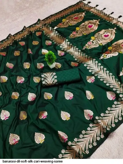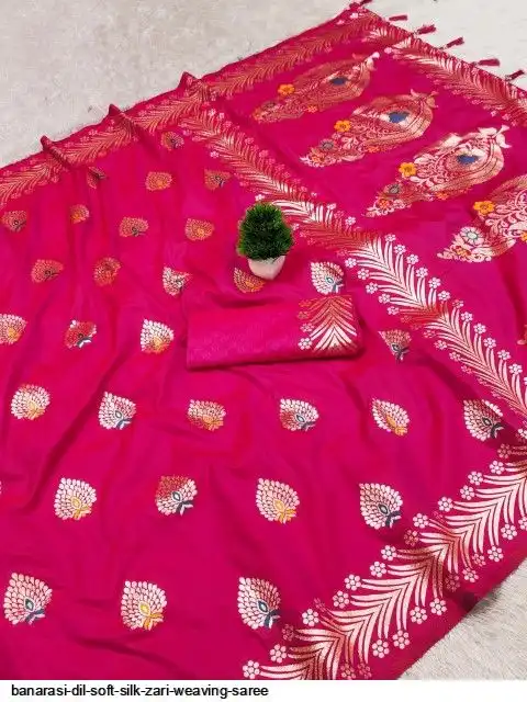 Saree :- Soft Banarasi silk saree with zari weaving Meenakari touchup design all over the saree & Meenakari weawing Rich pallu with Meenakari weawing border & Tassels attached at Pallu End.