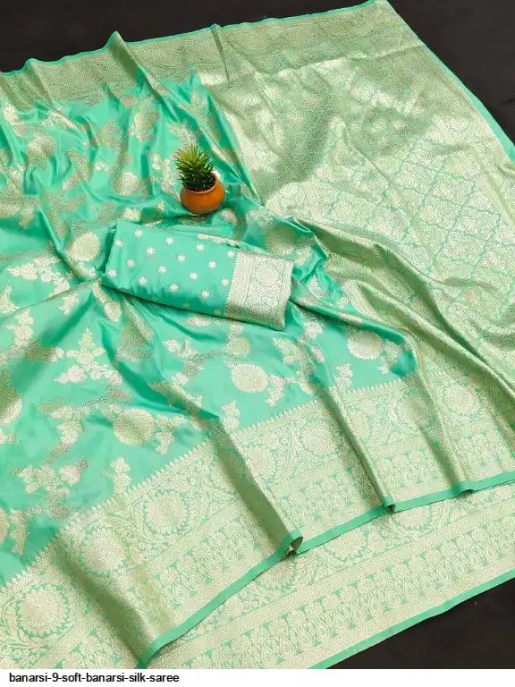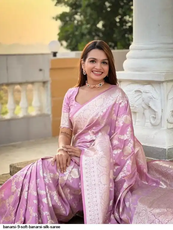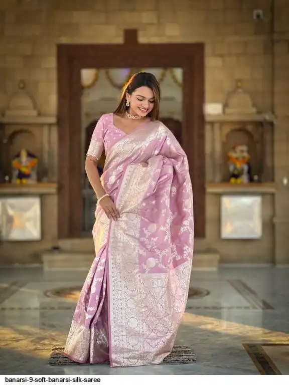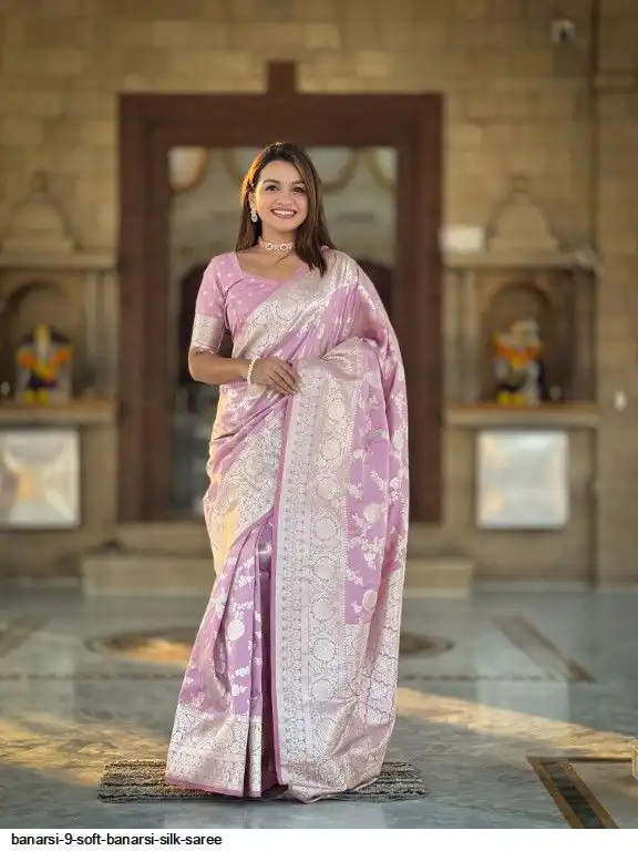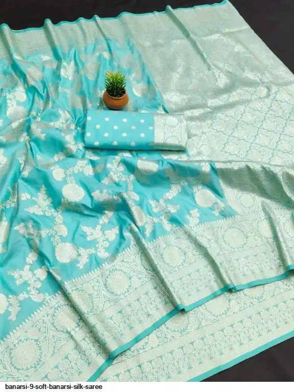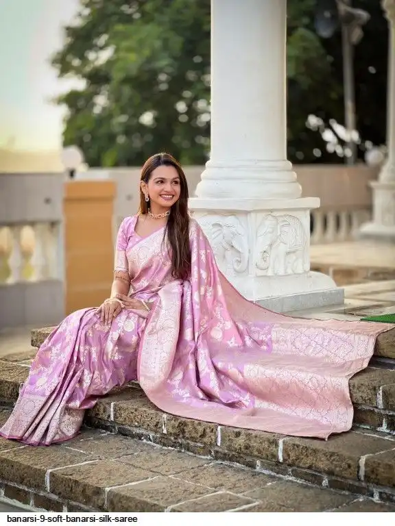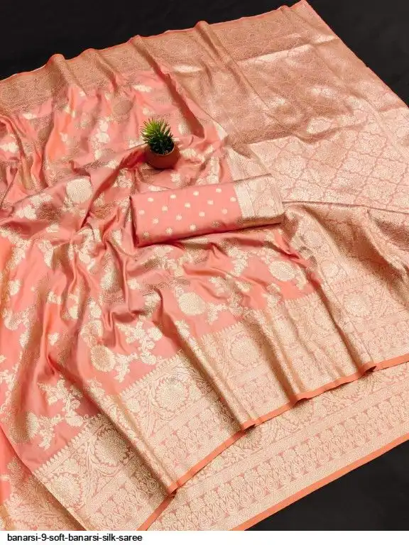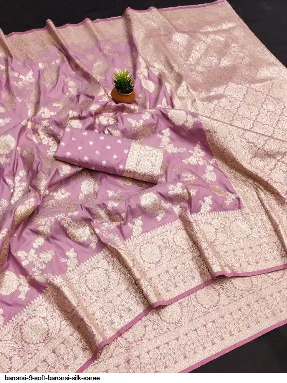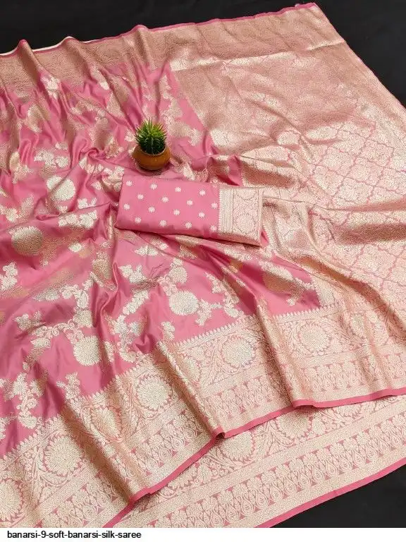 Saree :- Soft Banarasi silk saree with zari weaving design all over the saree & weawing Rich pallu with zari weawing border.