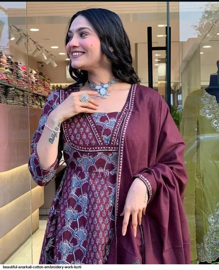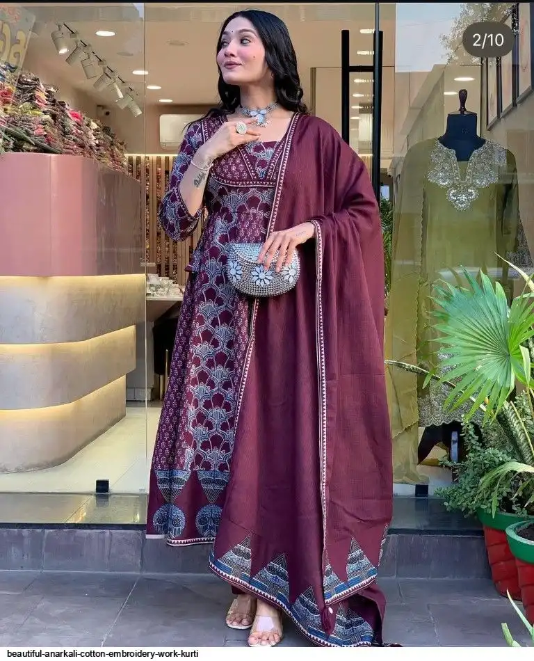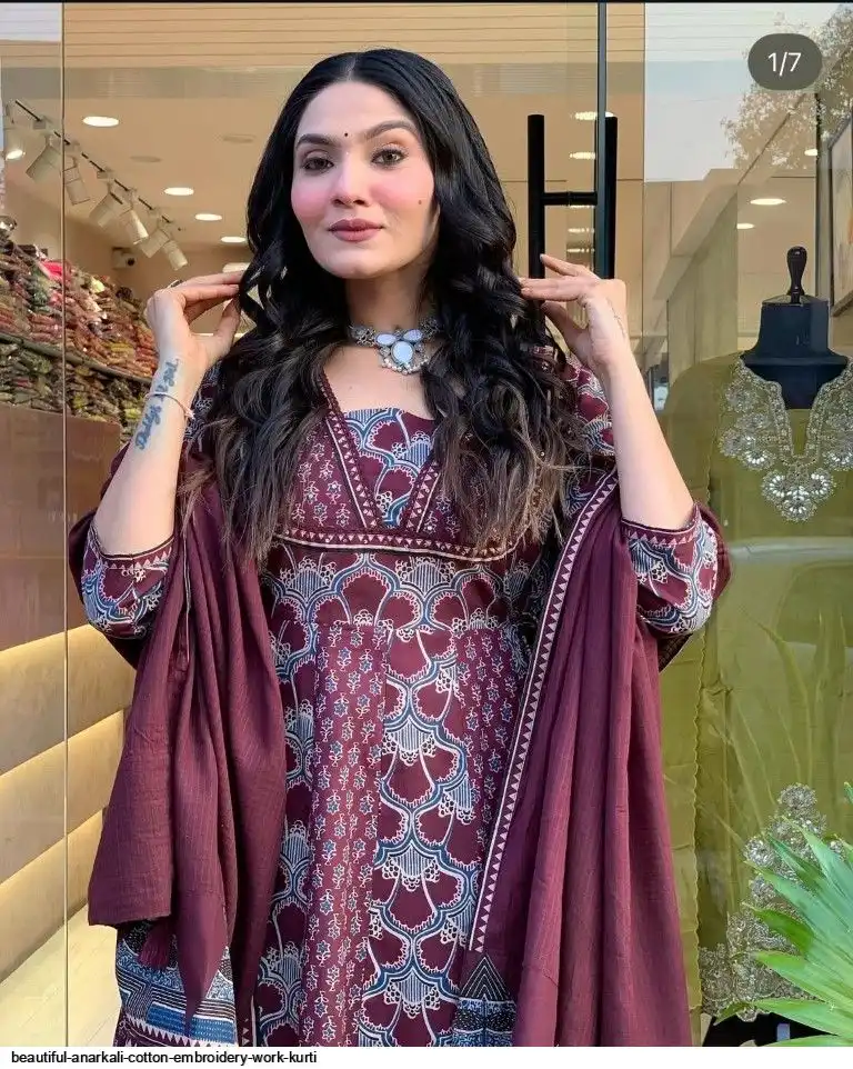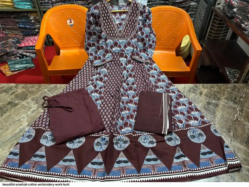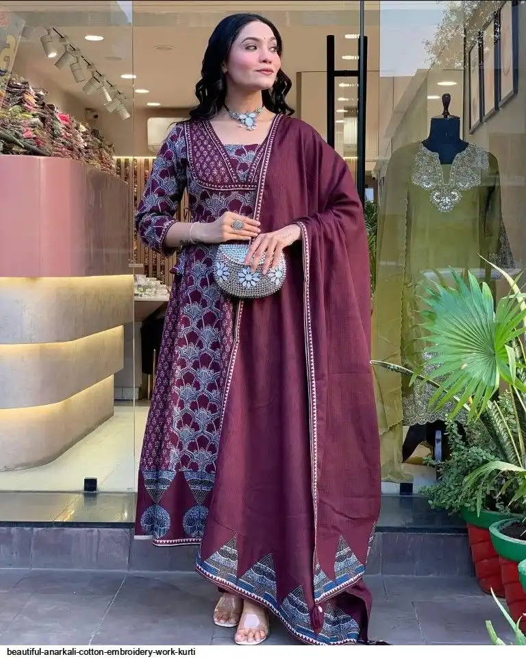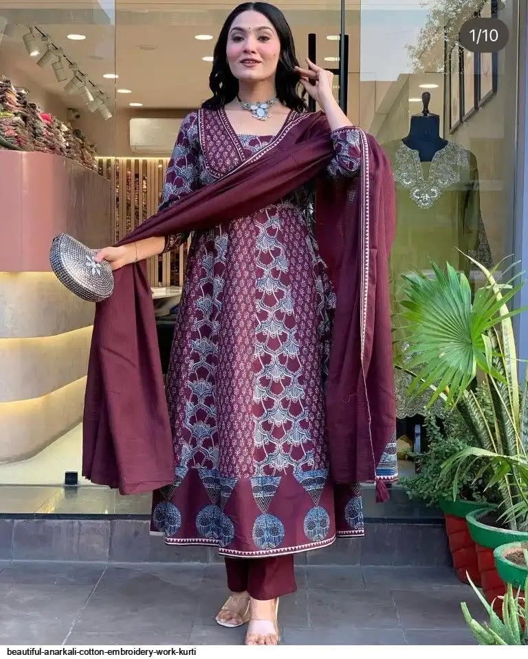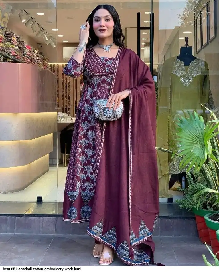 Kurta with hand with Embroidery work detailing on women's printed cotton kurta & pant or dupatta set