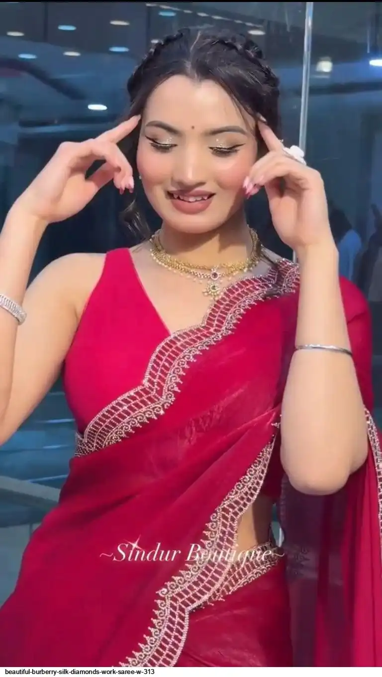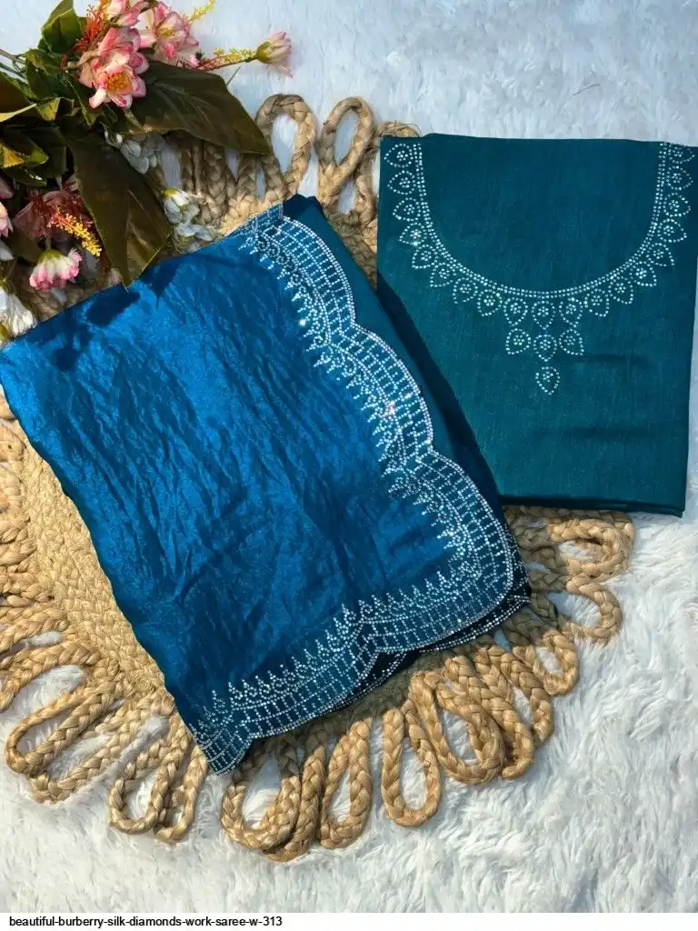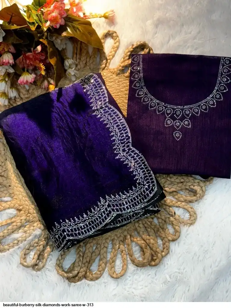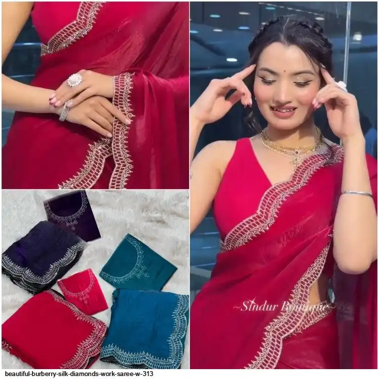 SAREE DETAILS :- Pure Soft Burburry Silk With Beautiful Sirovski Diamonds Work In Border On All Over Saree (5.50 Cut)