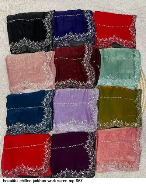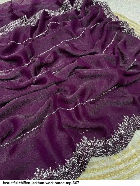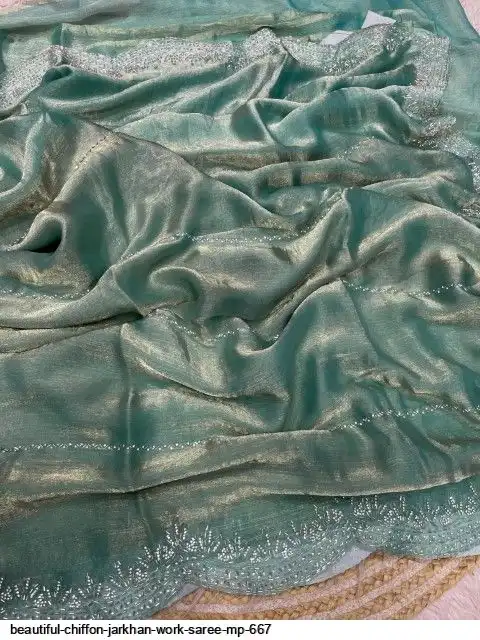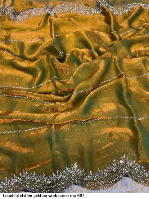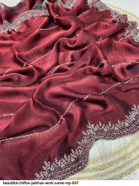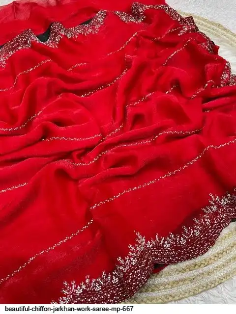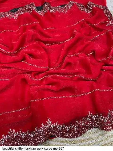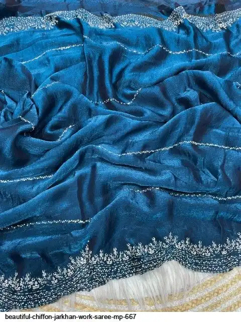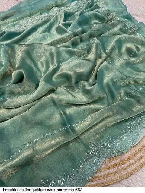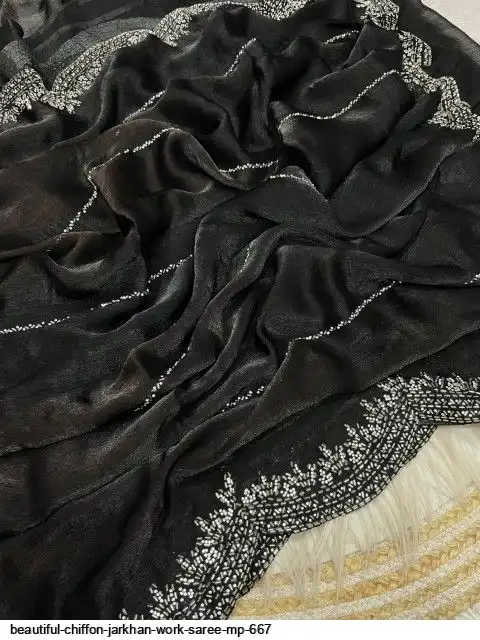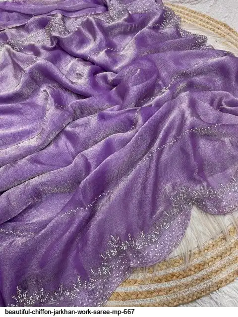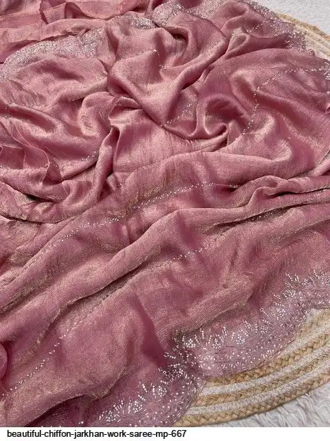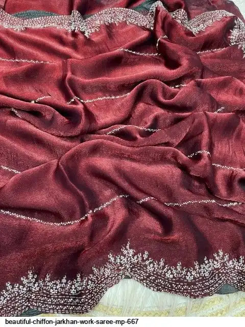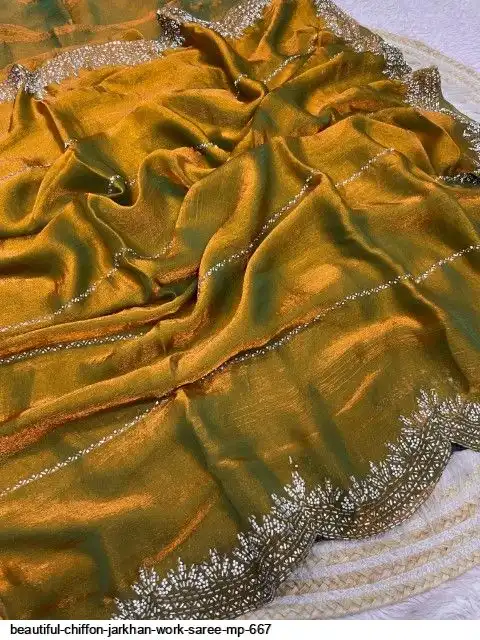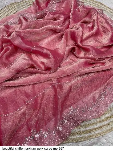 Fabric:-Fandy chiffon two ton Blooming With Beautiful jarkhan Work With Siroski Work*