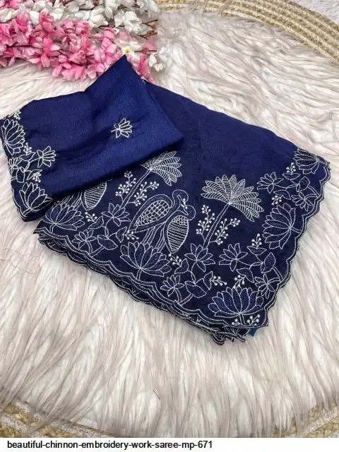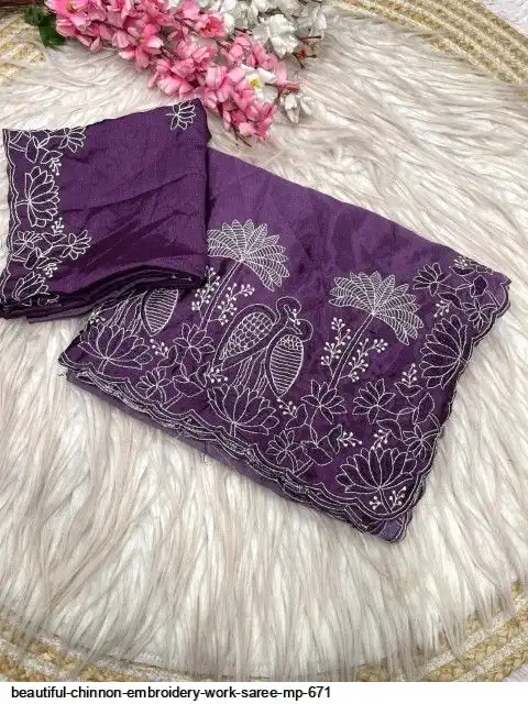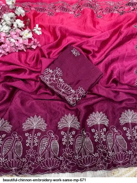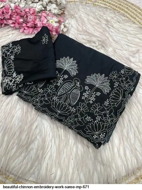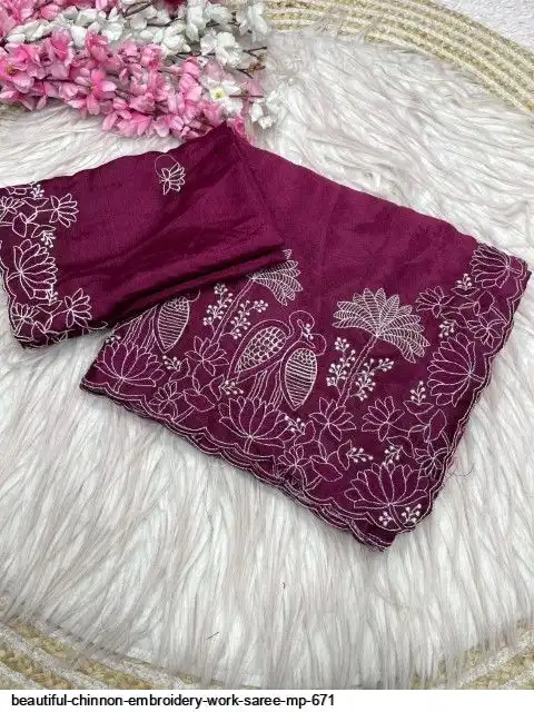 Fabric : Chinnon padding multi embroidery work blouse ( Unsitch blouse)