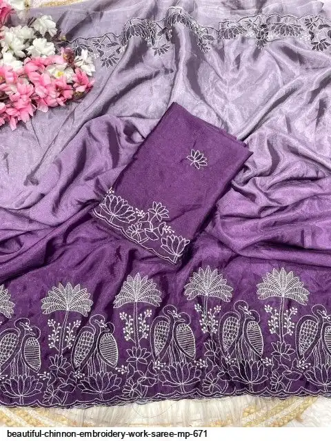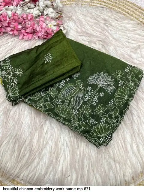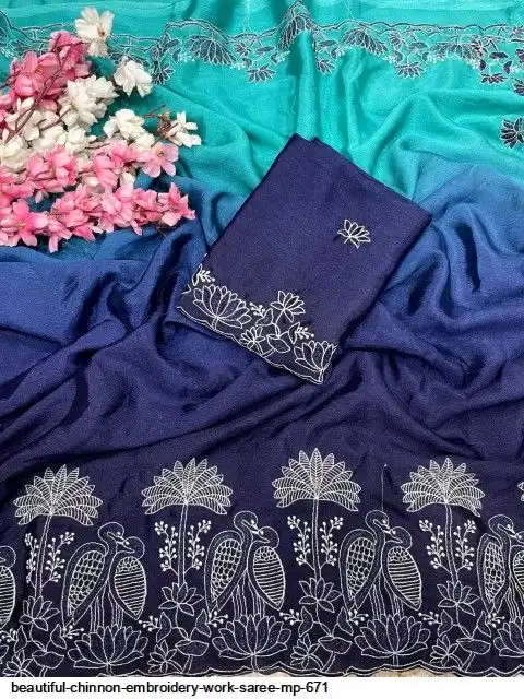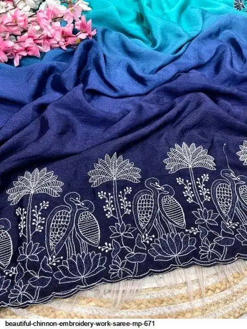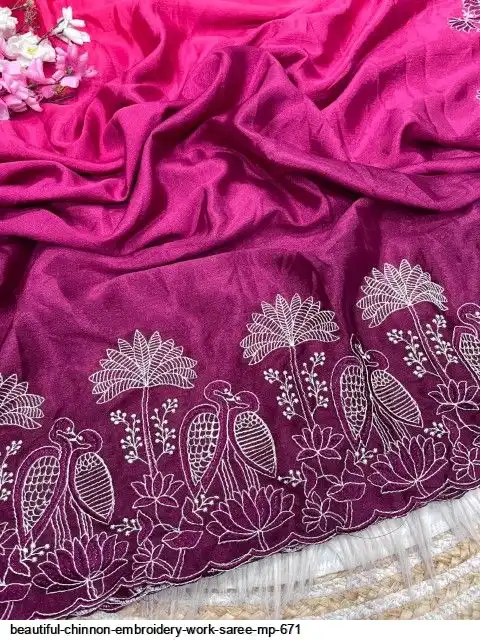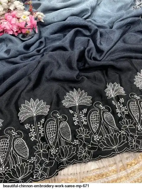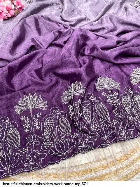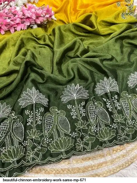 Work : C -pallu multi Embroidery work with Elegant bird design in saree .
