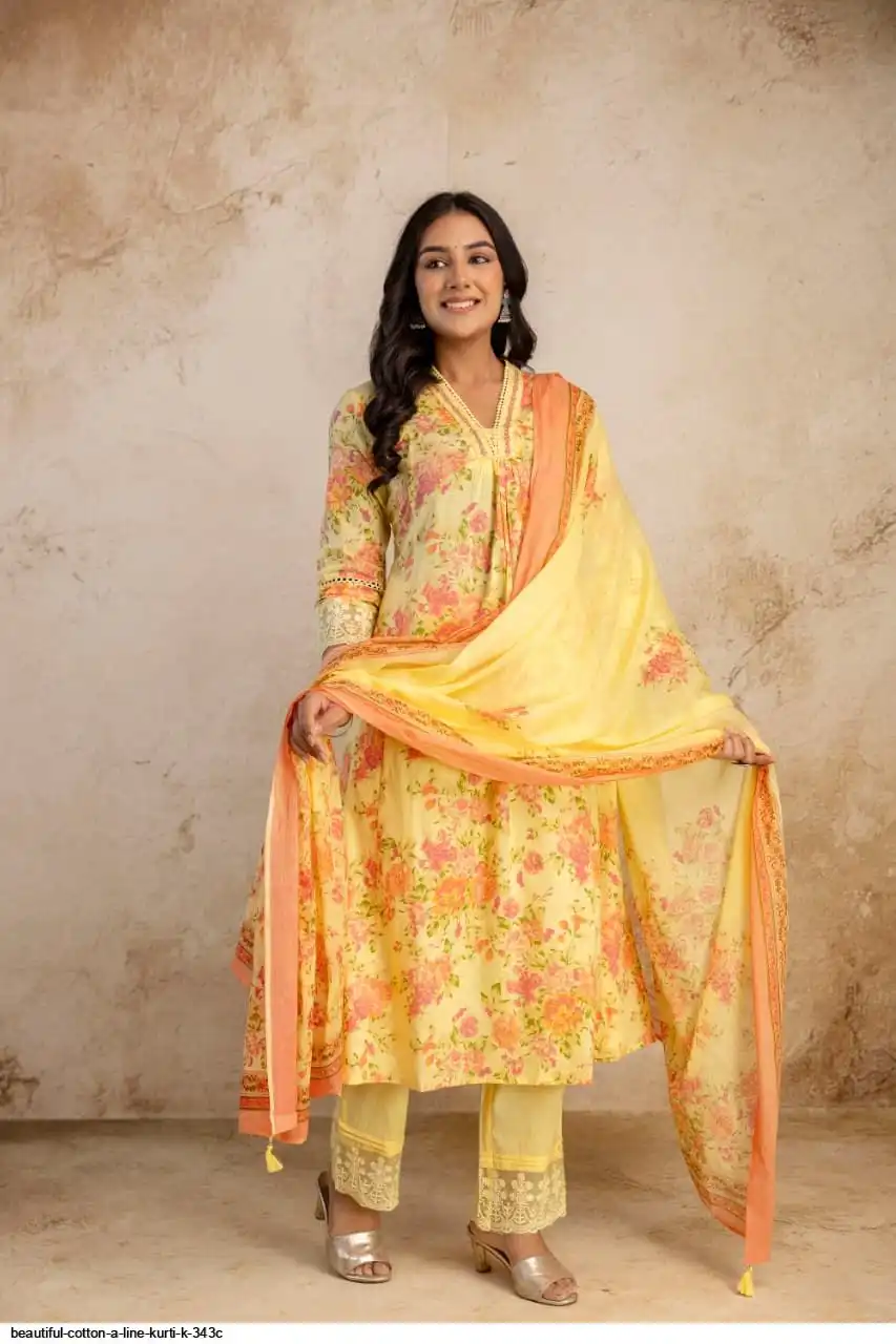 BEAUTIFUL COTTON A LINE KURTI K 343C