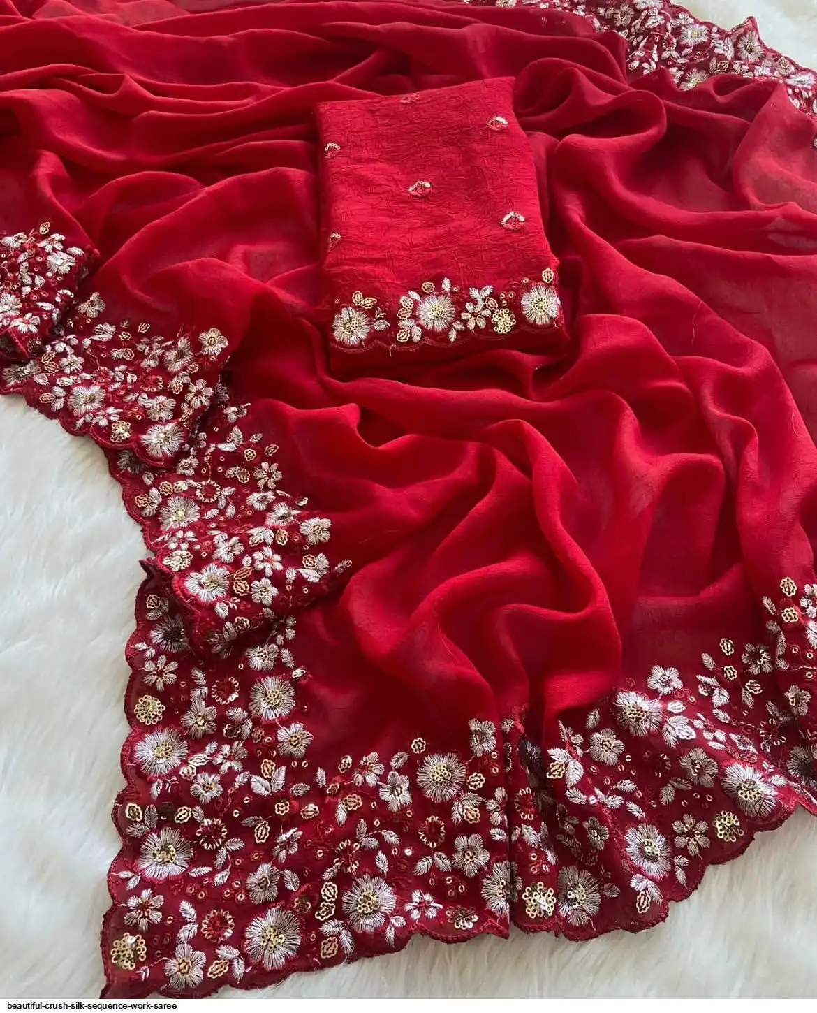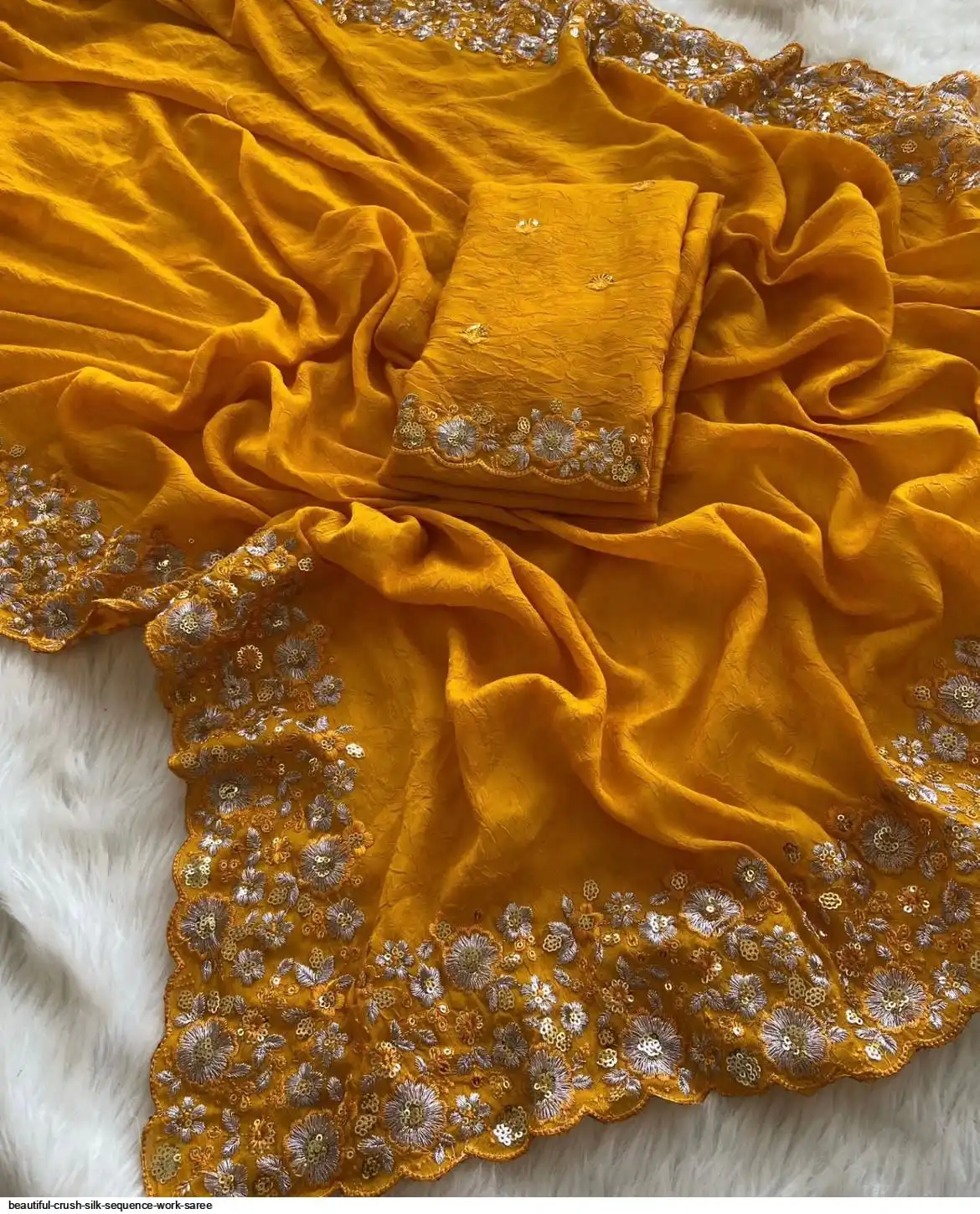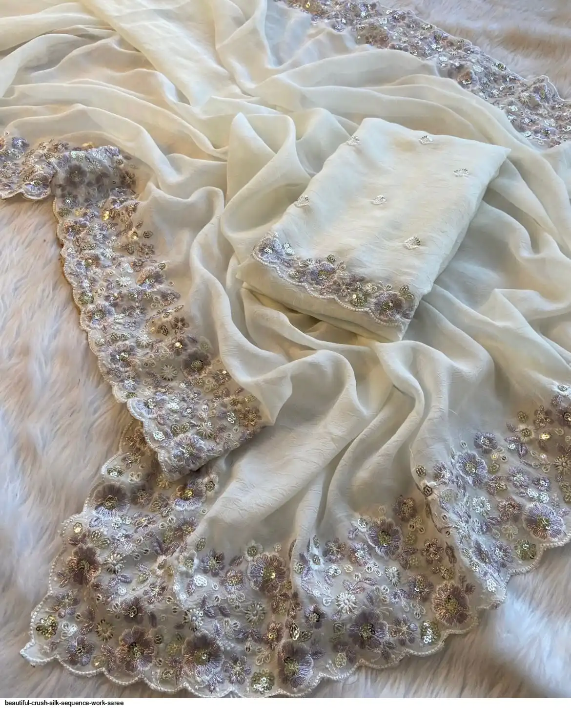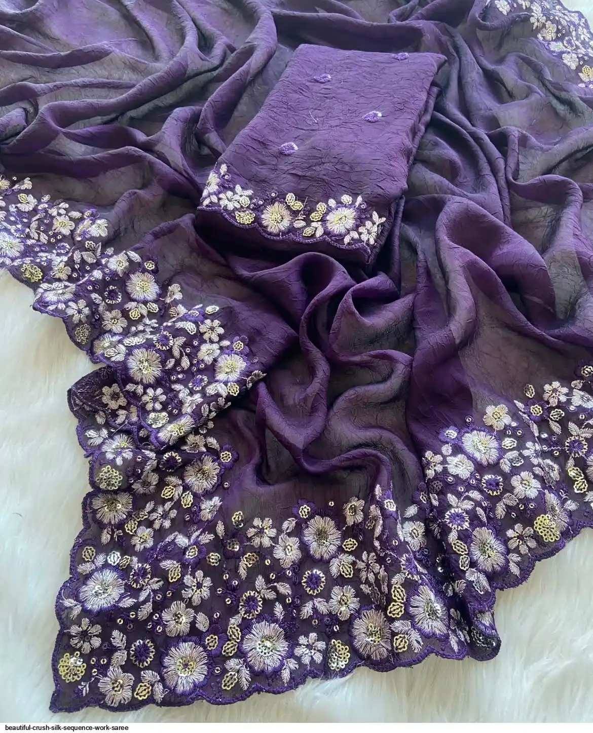 Fabric :- Crush Silk Saree With Fancy Sequince Embroderiy Work & Fancy Blouse