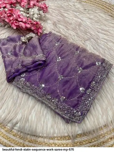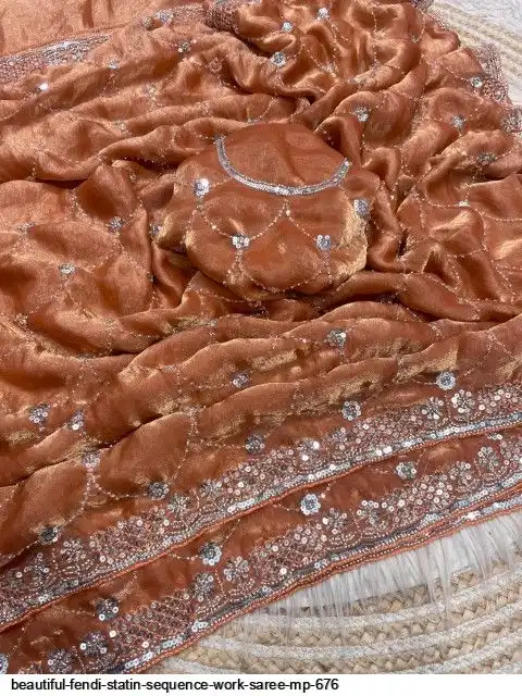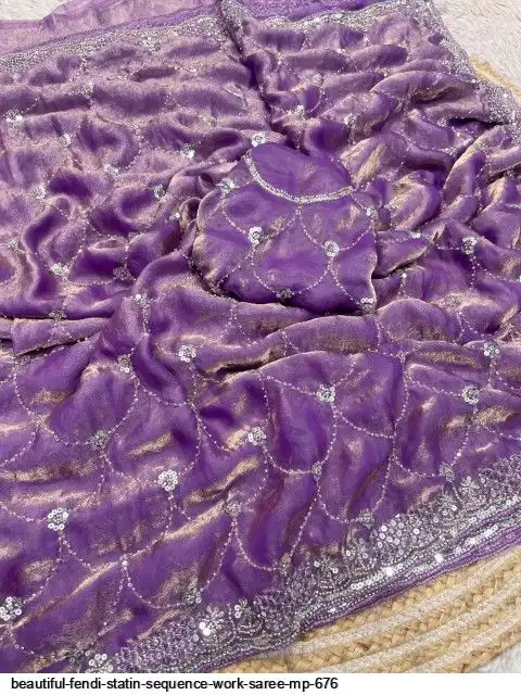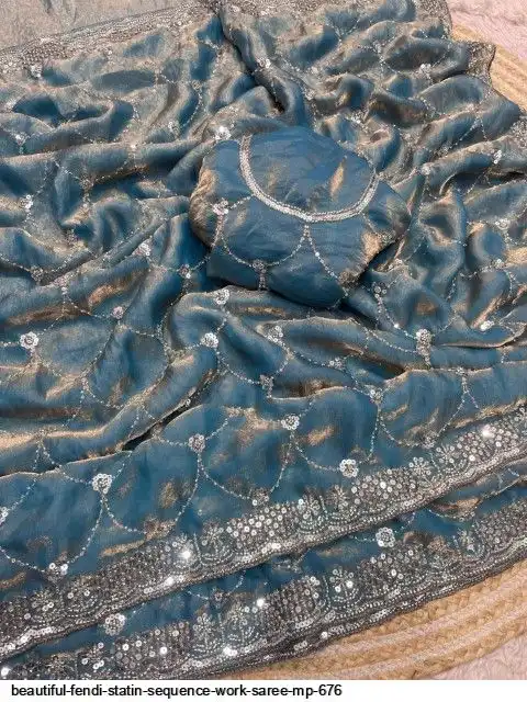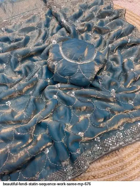 Work: Beautiful Sequence Brits C- pallu work along with all over arco bodar