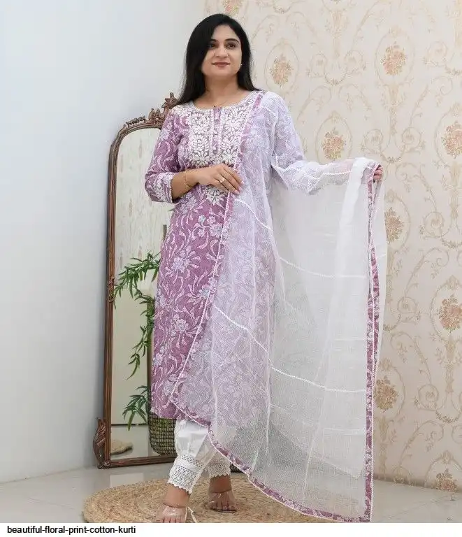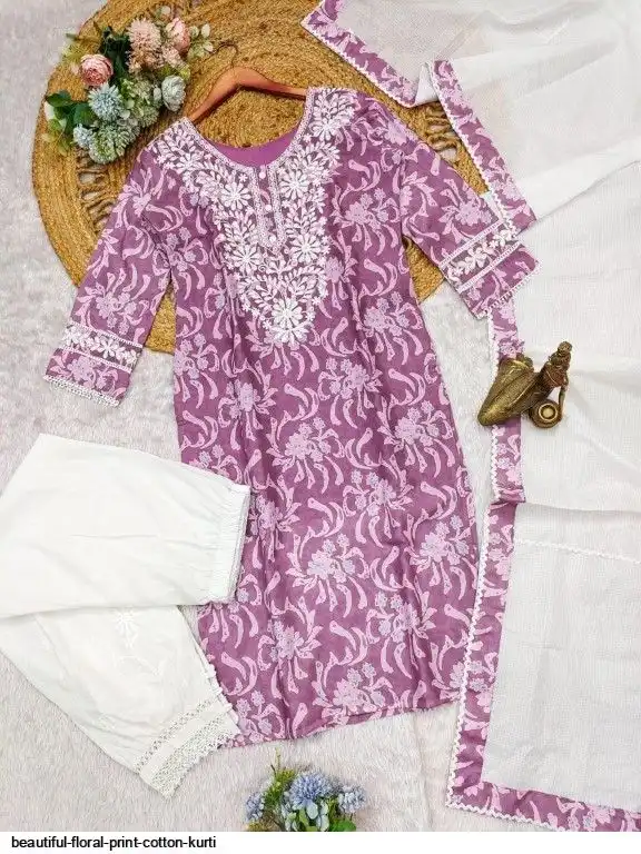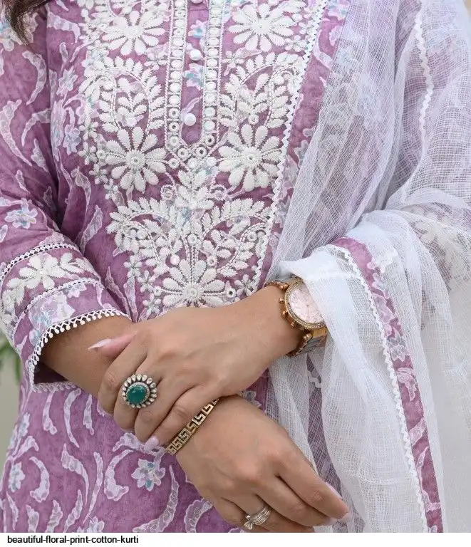 The kurta and dupatta both have white embroidery. This adds a touch of elegance and detail to the outfit.