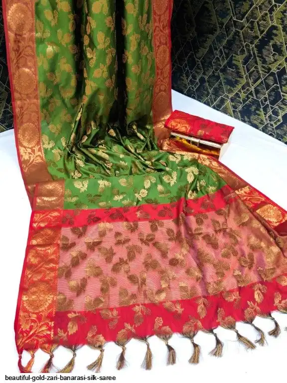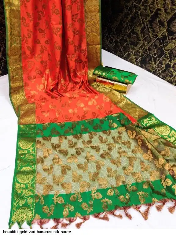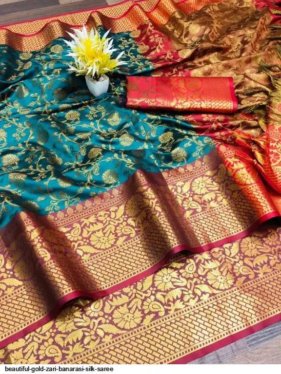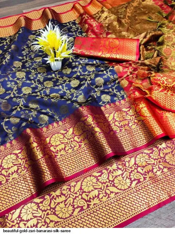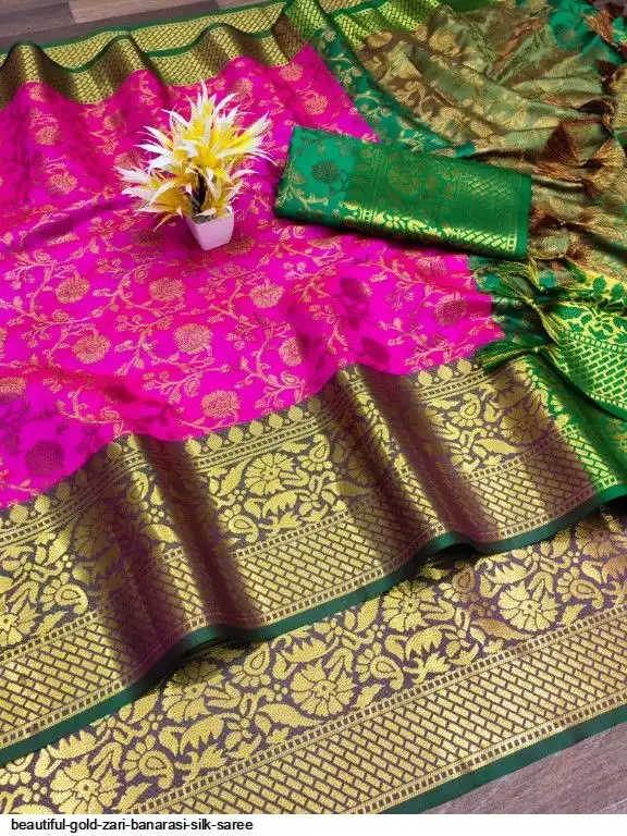 SAREE :- Banarasi Silk Saree With Beautiful Gold Zari Weaving With Chit Pallu And Self Weaving Work All Over Saree(5.5Mtr)