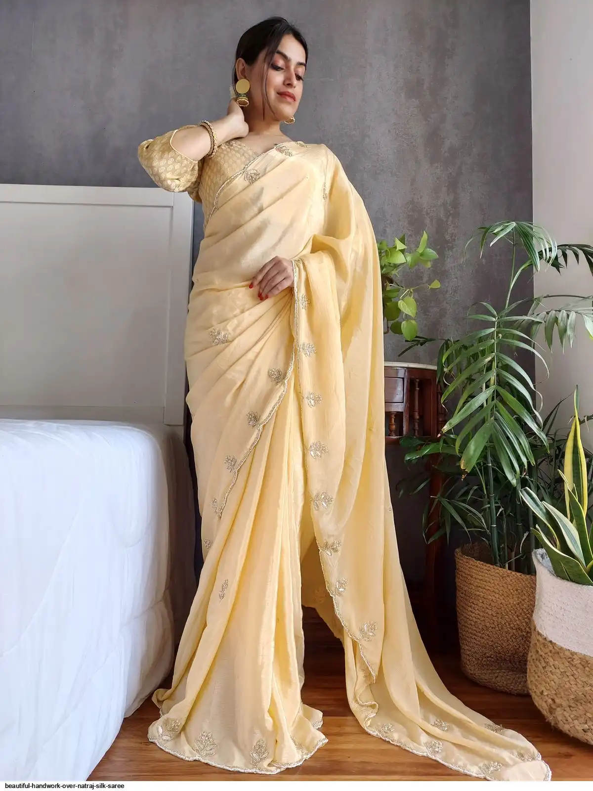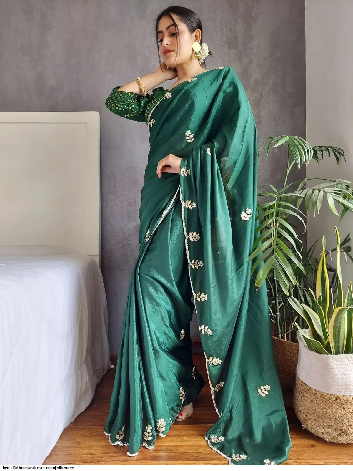 Beautiful handwork all over natraj silk saree and weaving saree matching unstitched blouse