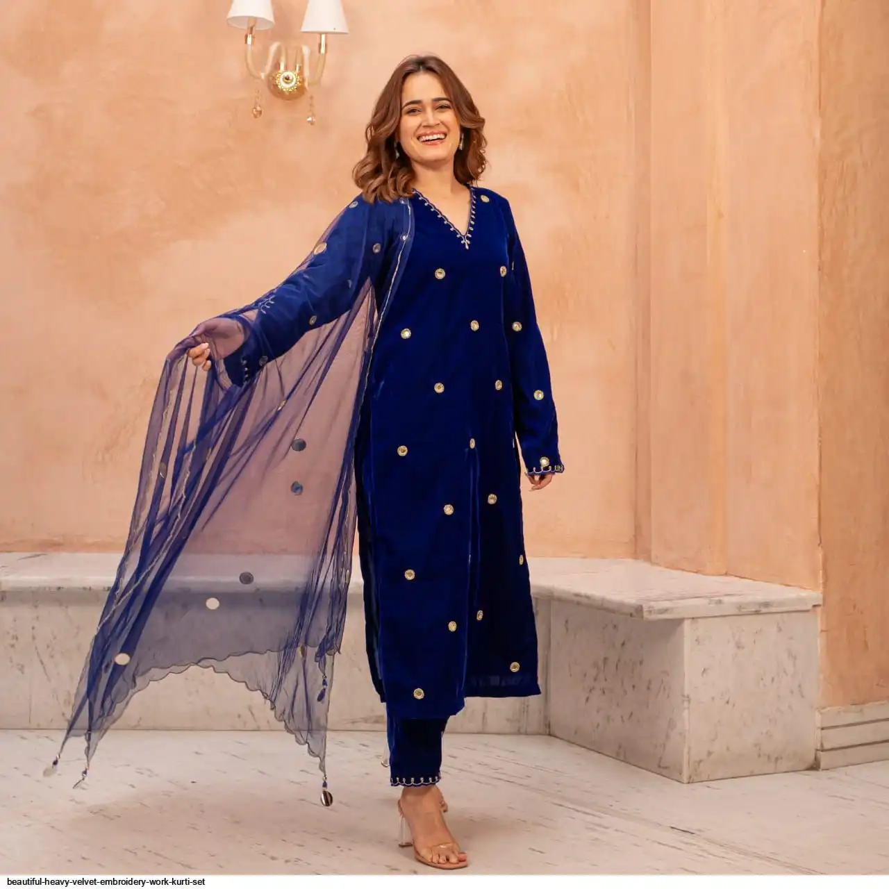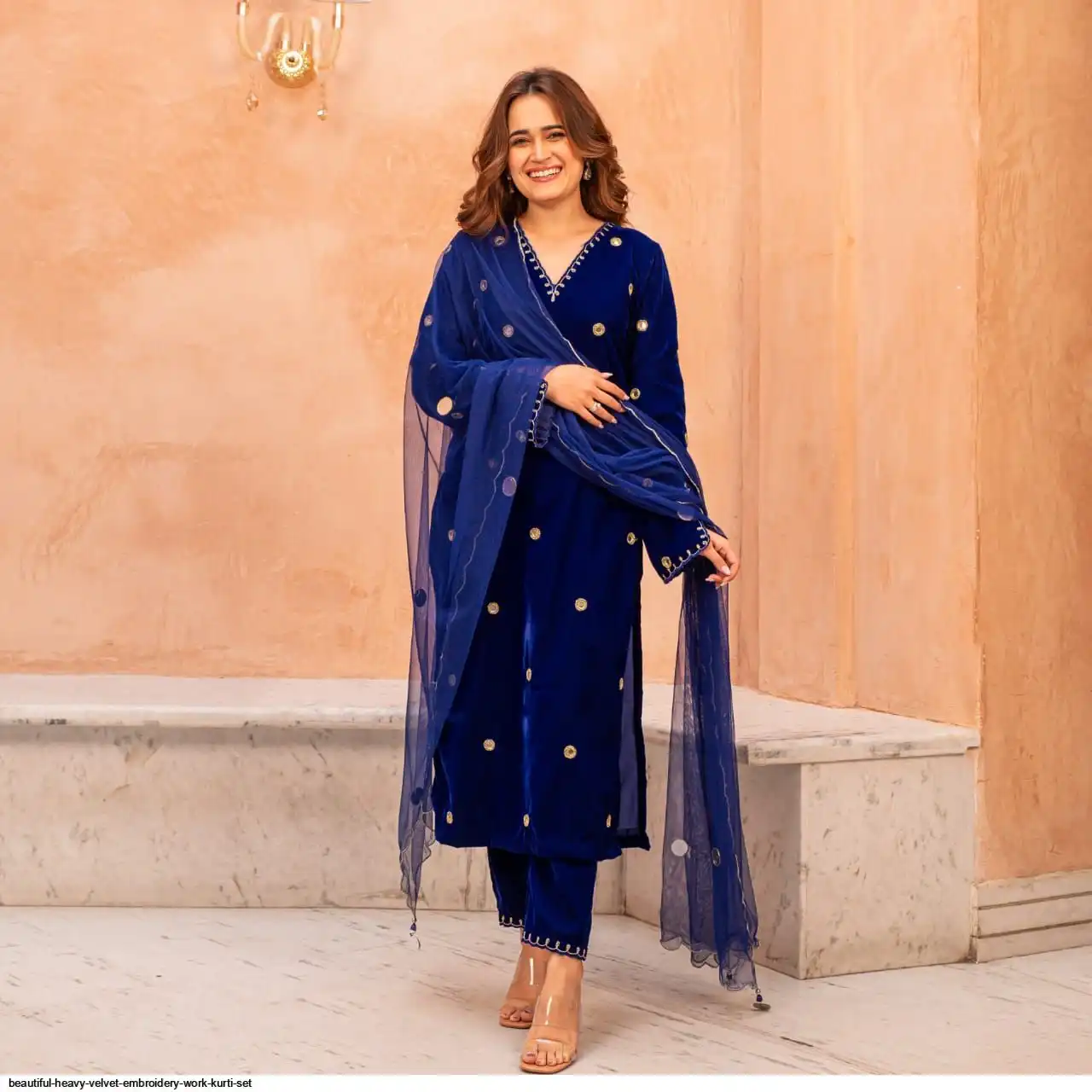 Suit Fabric: Heavy Velvet with overall Embroidery
