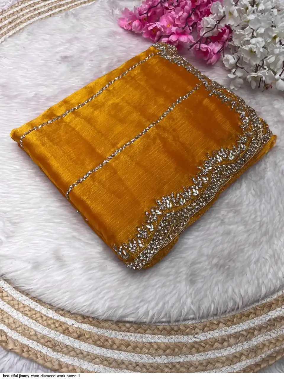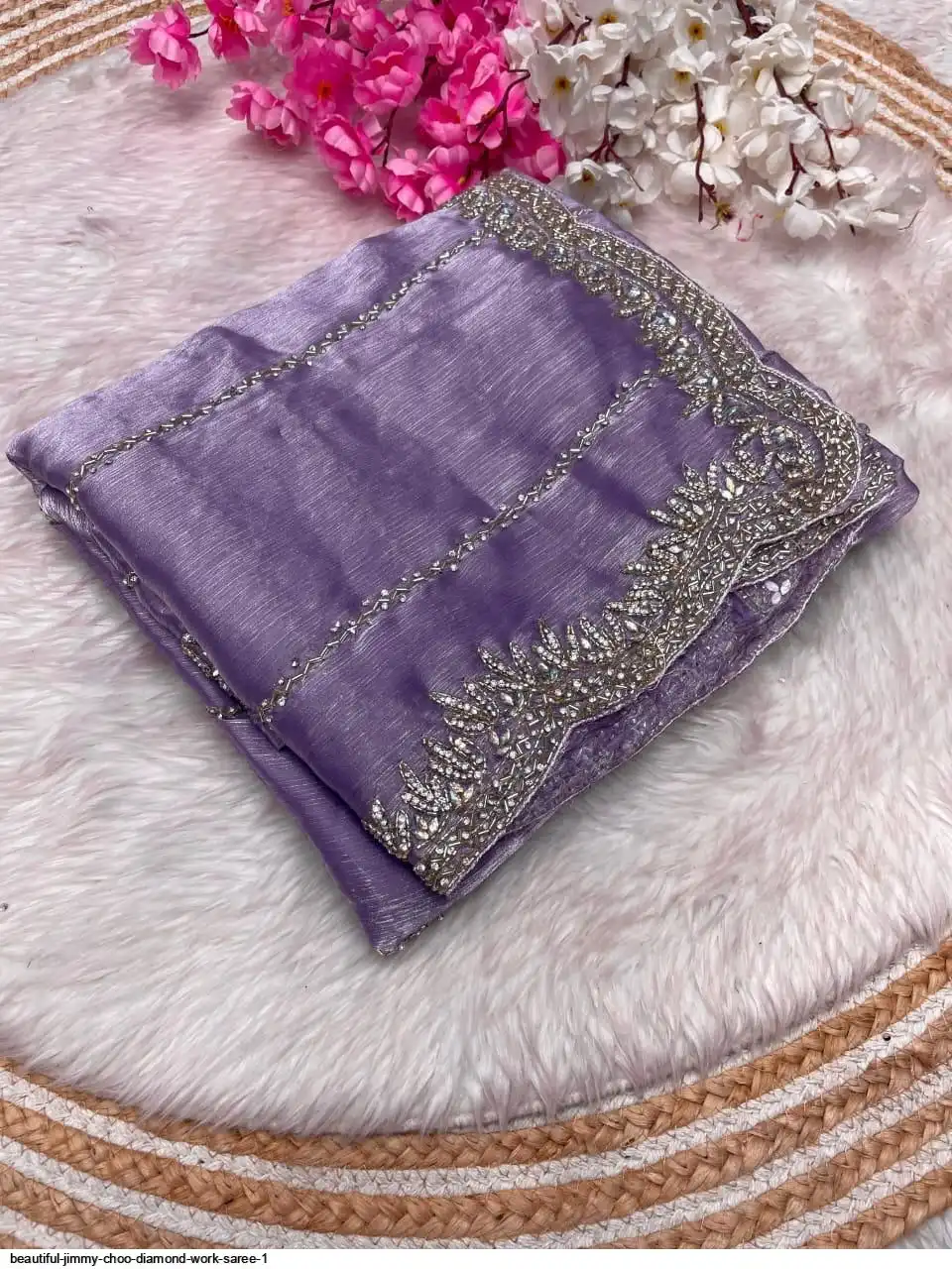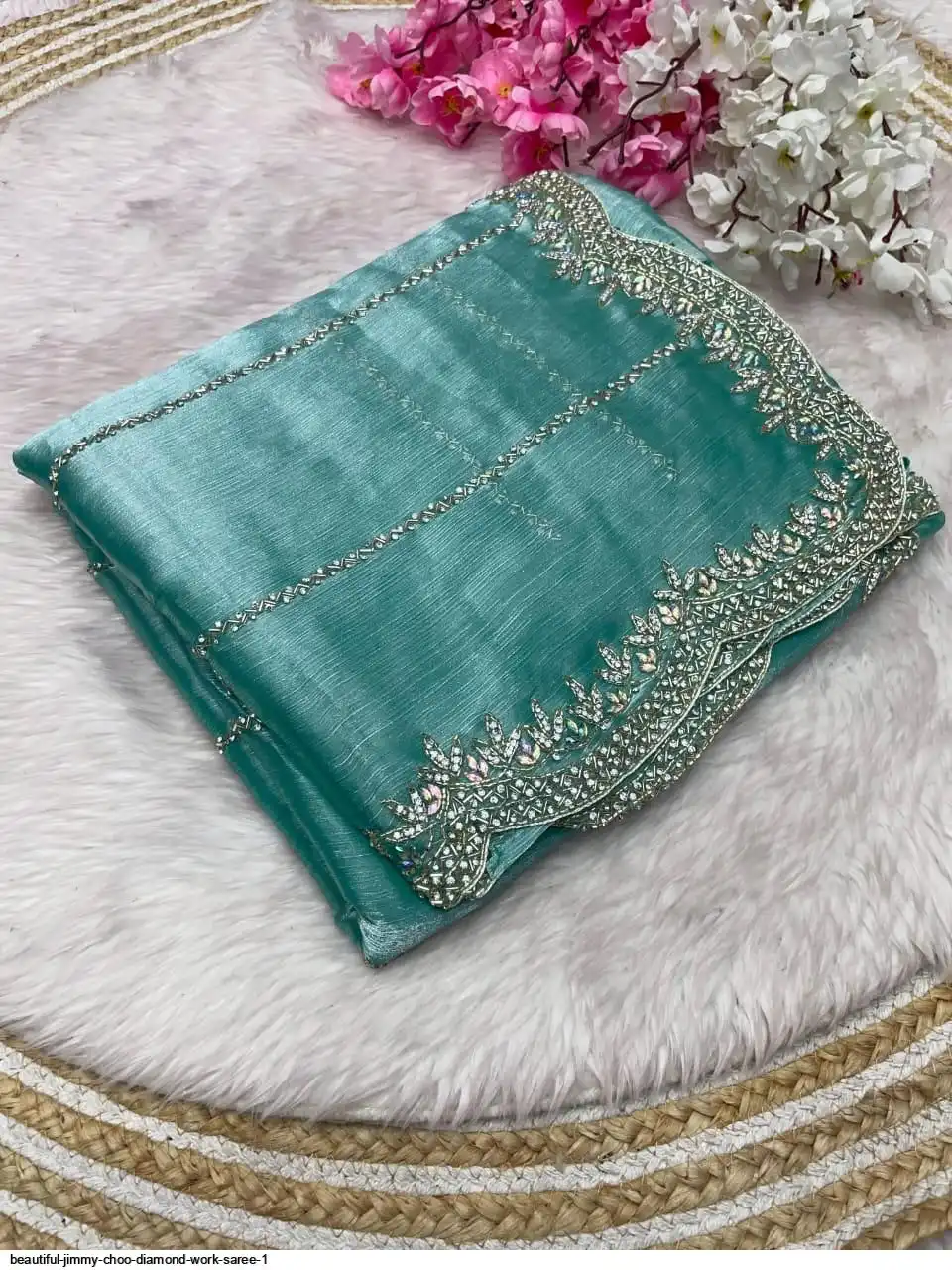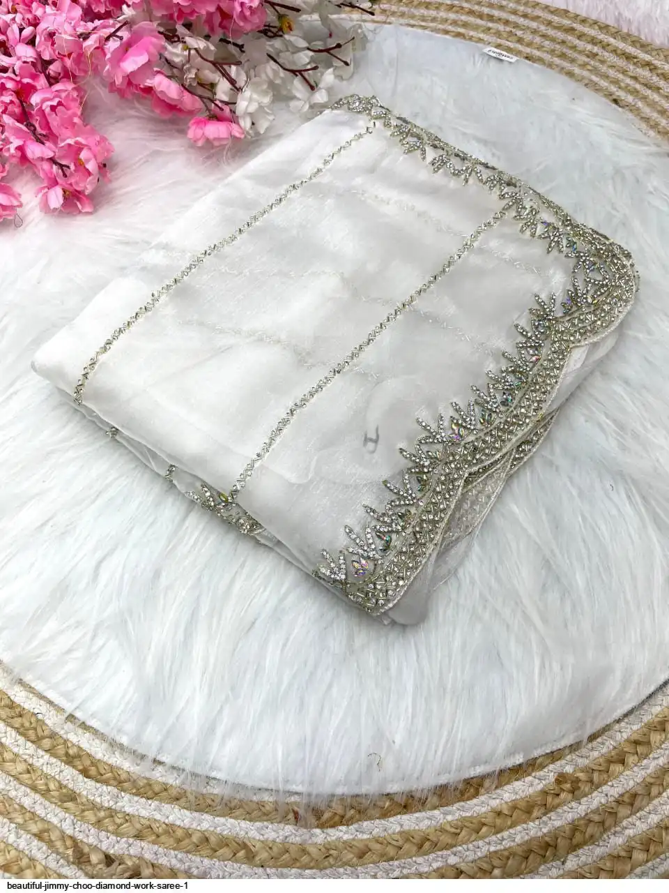 Fabric : Zimmy Choo Saree With Beautiful Khatli Cut Dana Handwork Along With Hand Diamond Work