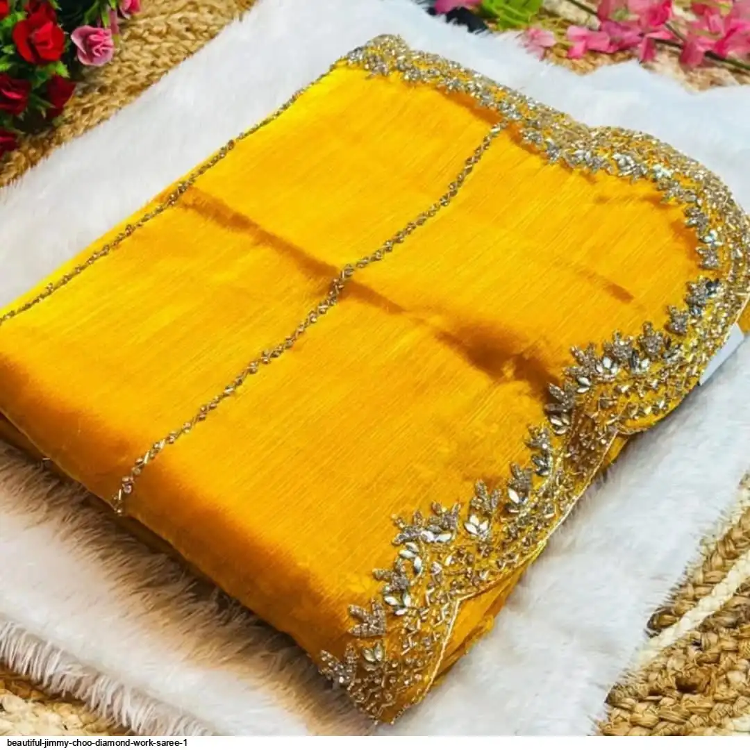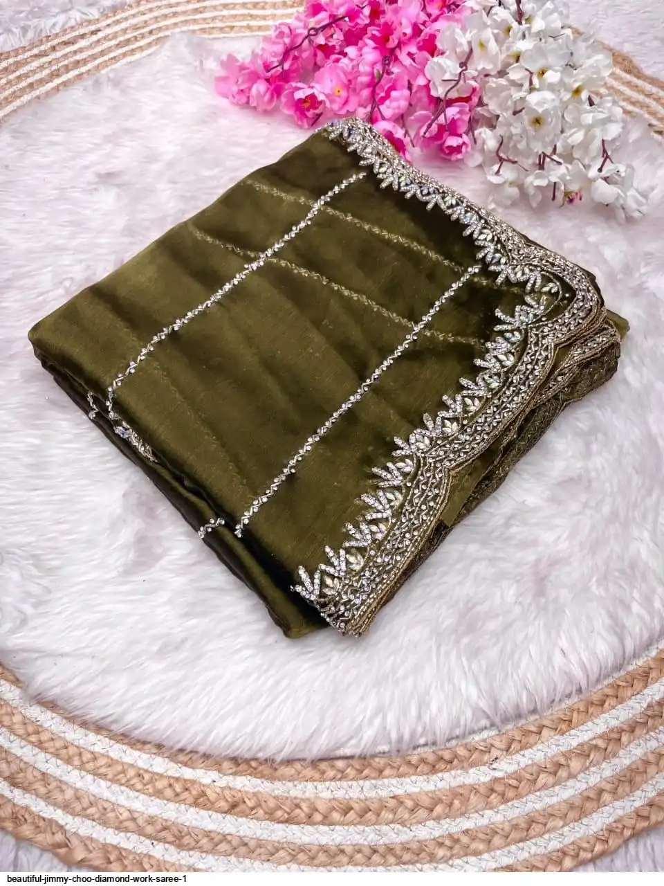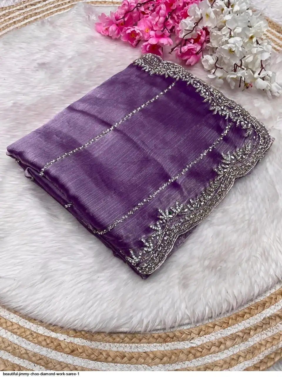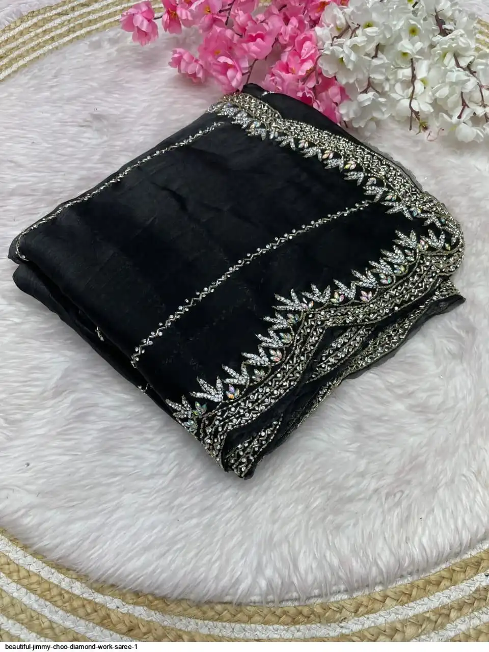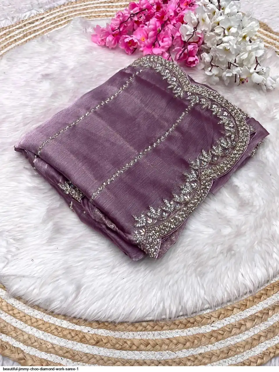 Fabric : Zimmy Choo Saree With Beautiful Khatli Cut Dana Handwork Along With Hand Diamond Work