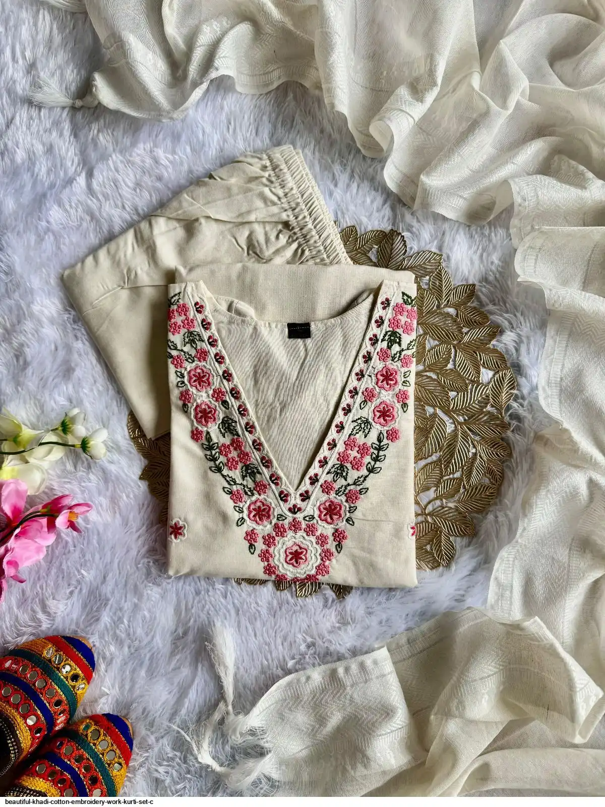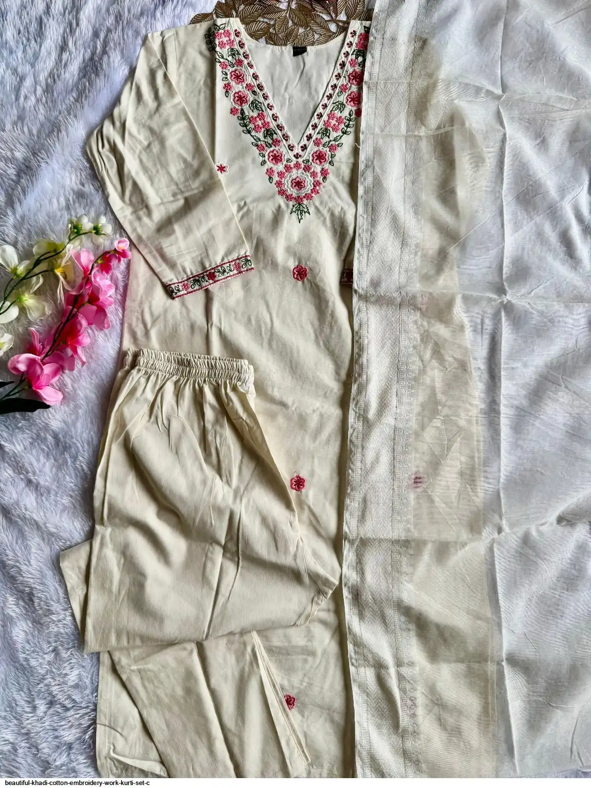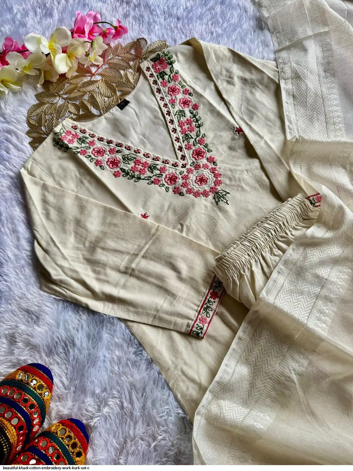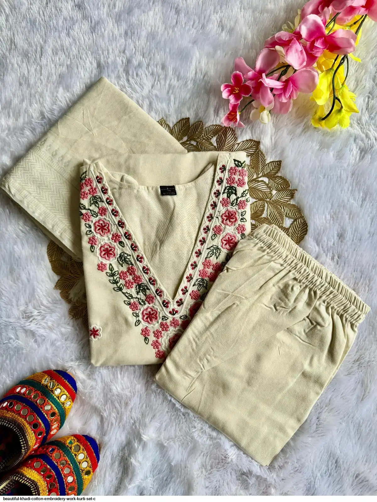 Kurti :- Khadi Cotton with Beautiful Embroidery