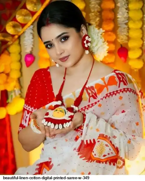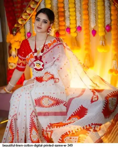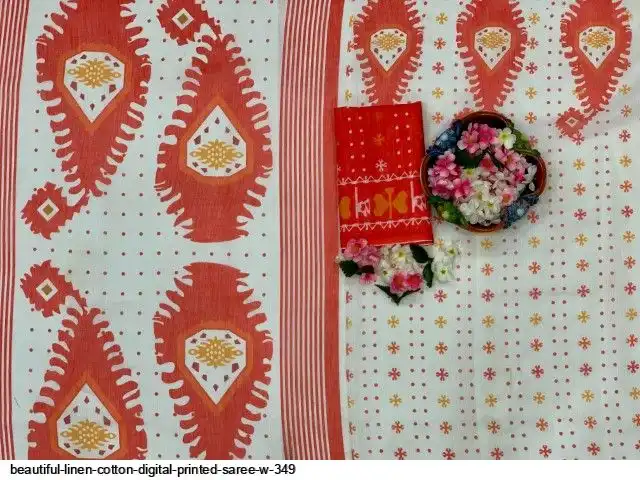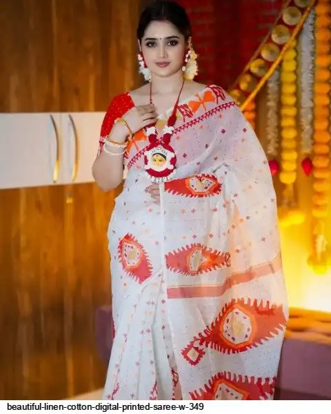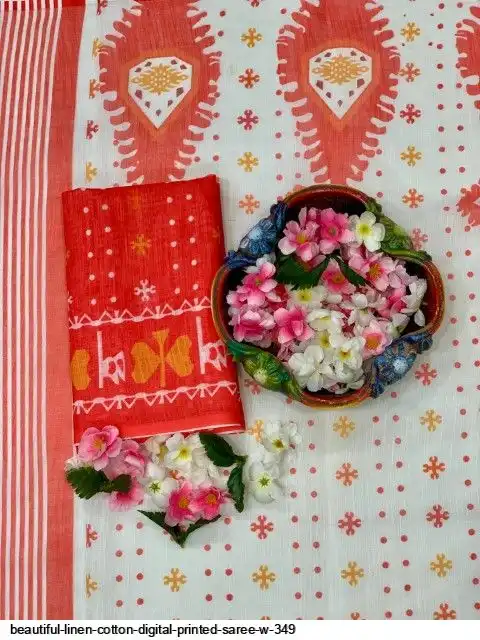 Fabric :- Linen Cotton With Beautiful Digital Printed Saree(5.5 Cut)