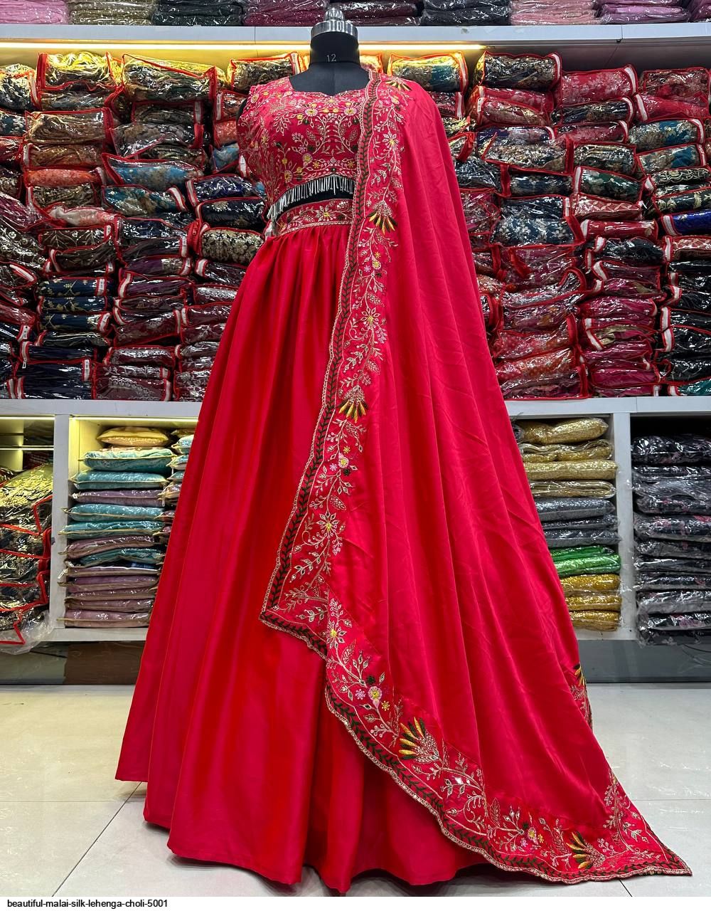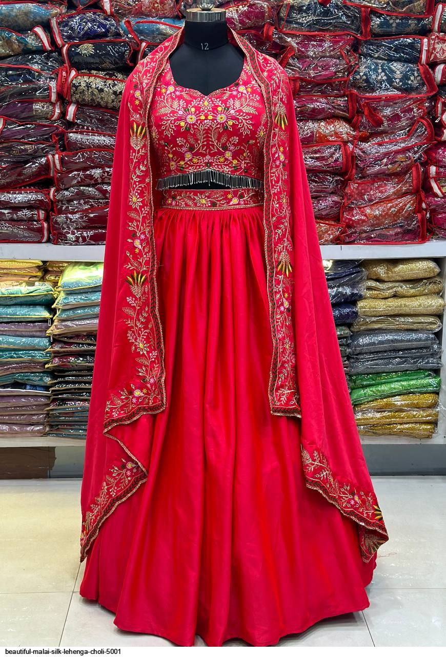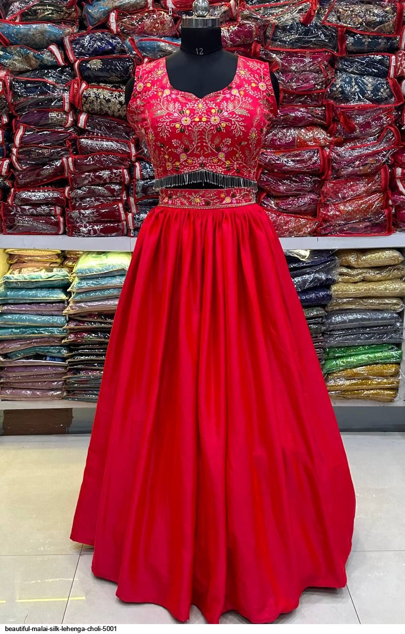 *LEHNGA: MALAI SILK WITH WAIST EMBROIDERY DESIGN WORK*